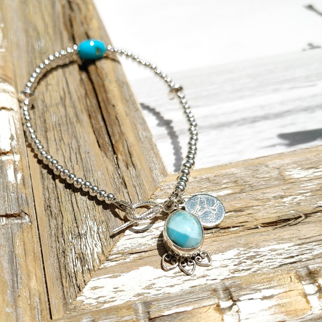 ♡Sky&Sea bracelet all silver925♡ ラリマー&スリーピングビューティーターコイズ