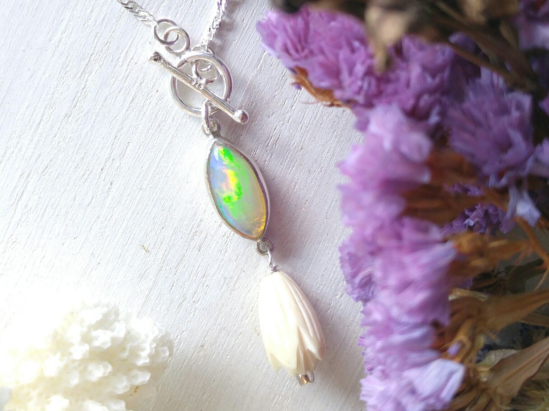 ♡月の光&愛らしいピカケの首飾り♡silver925−レア!強い煌めきが美しい宝石質のプレシャスオパール&ヴィンテージのピカケの花♡-