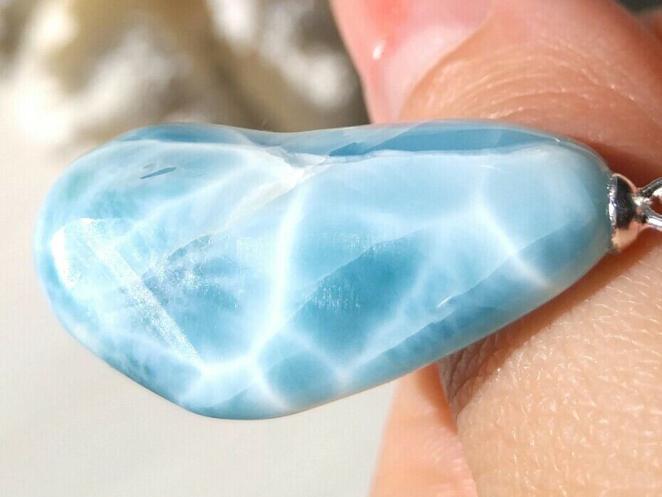 透明感があり、波模様もシャトヤンシーも美しいドミニカ共和国直輸入のハイクラス以上のラリマーを使った