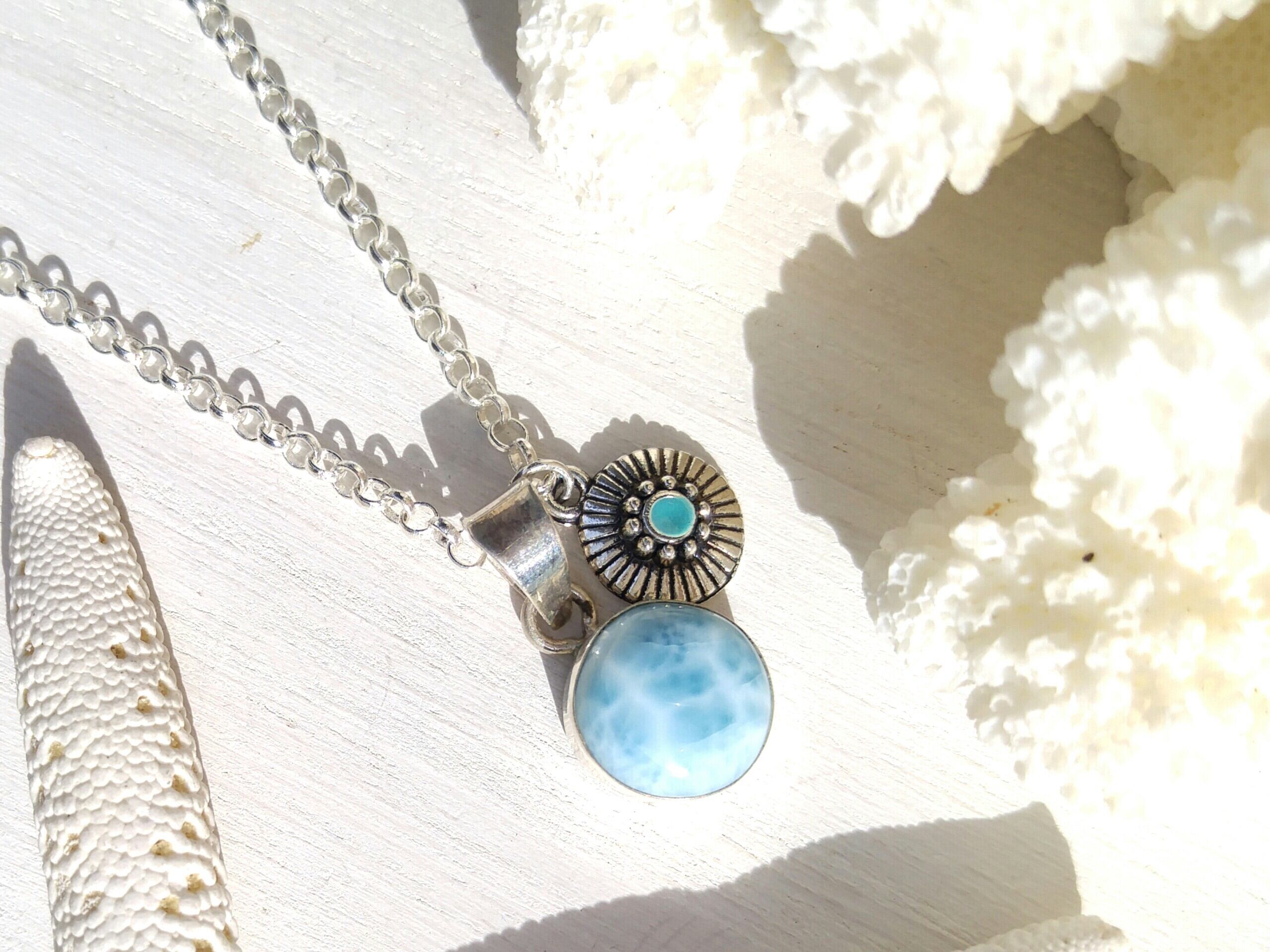 波模様が美しいドミニカ共和国直輸入の可愛いまん丸満月ラリマーのネックレスです。