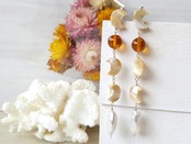 サプライズ!!Honey Moon(14kgf)−美しいドミニカンアンバー&シェルのお月様の大人可愛いピアス-
