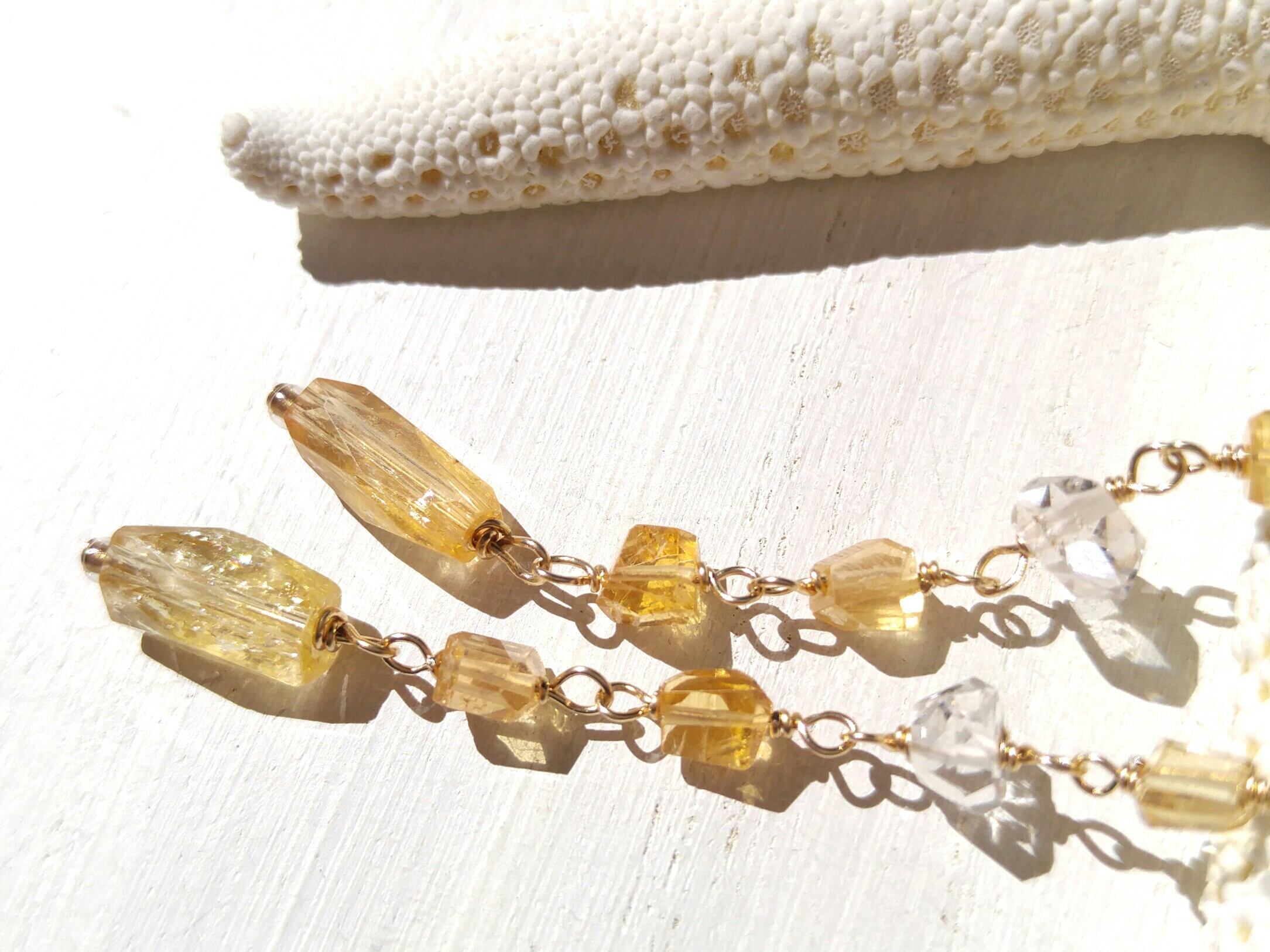インペリアルトパーズ、シェルフラワー、ハーキマーダイヤモンドを使った