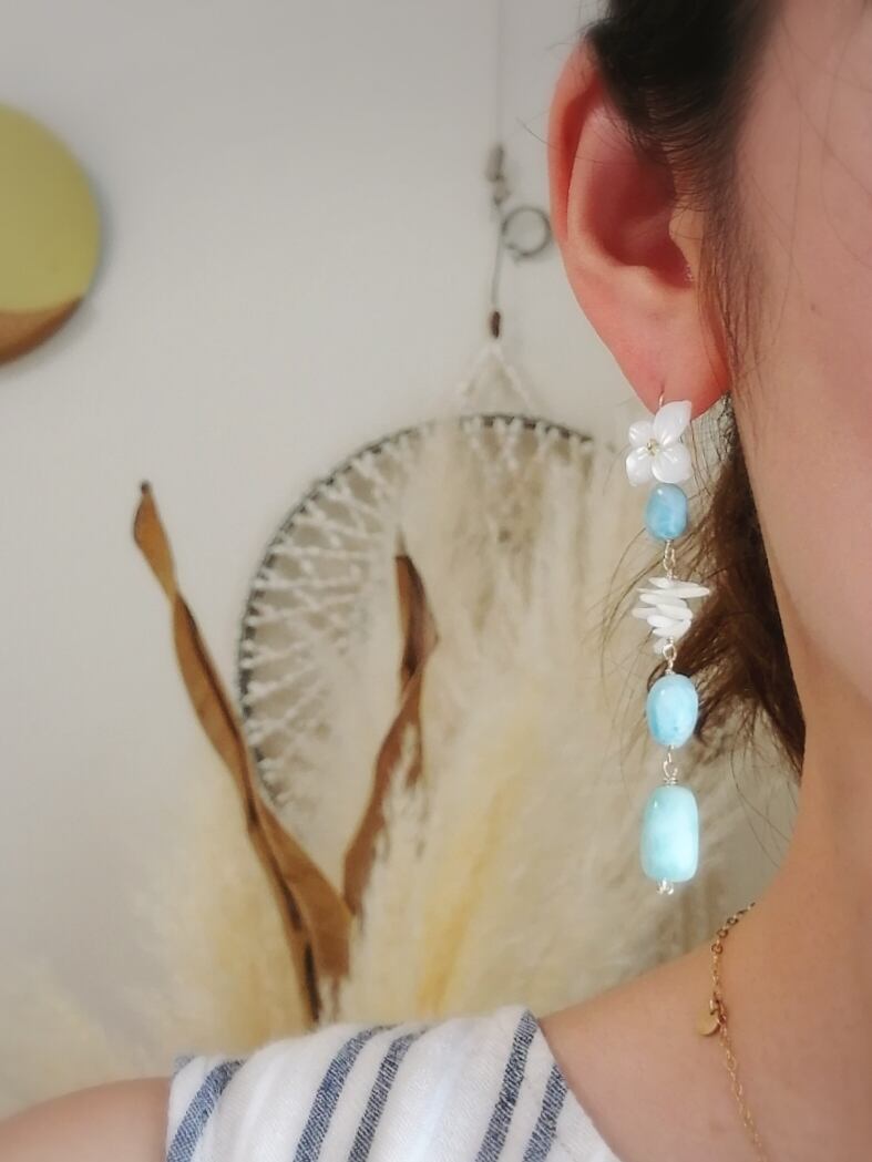 白珊瑚枝、ラリマーと花の組み合わせは最強に可愛い組み合わせ♡