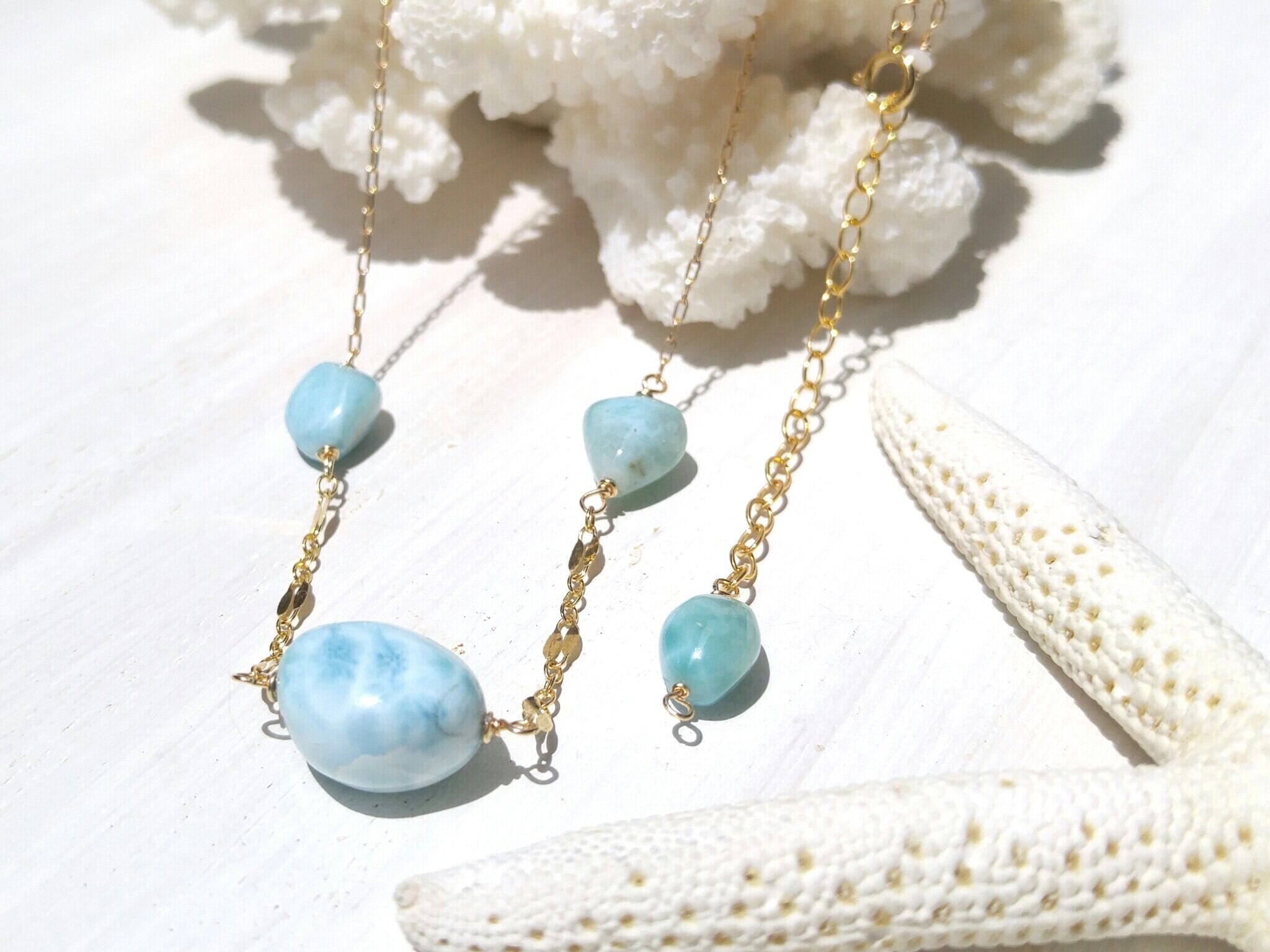 海の欠片のような、実のような、ドミニカ共和国直輸入の可愛いラリマーを使った