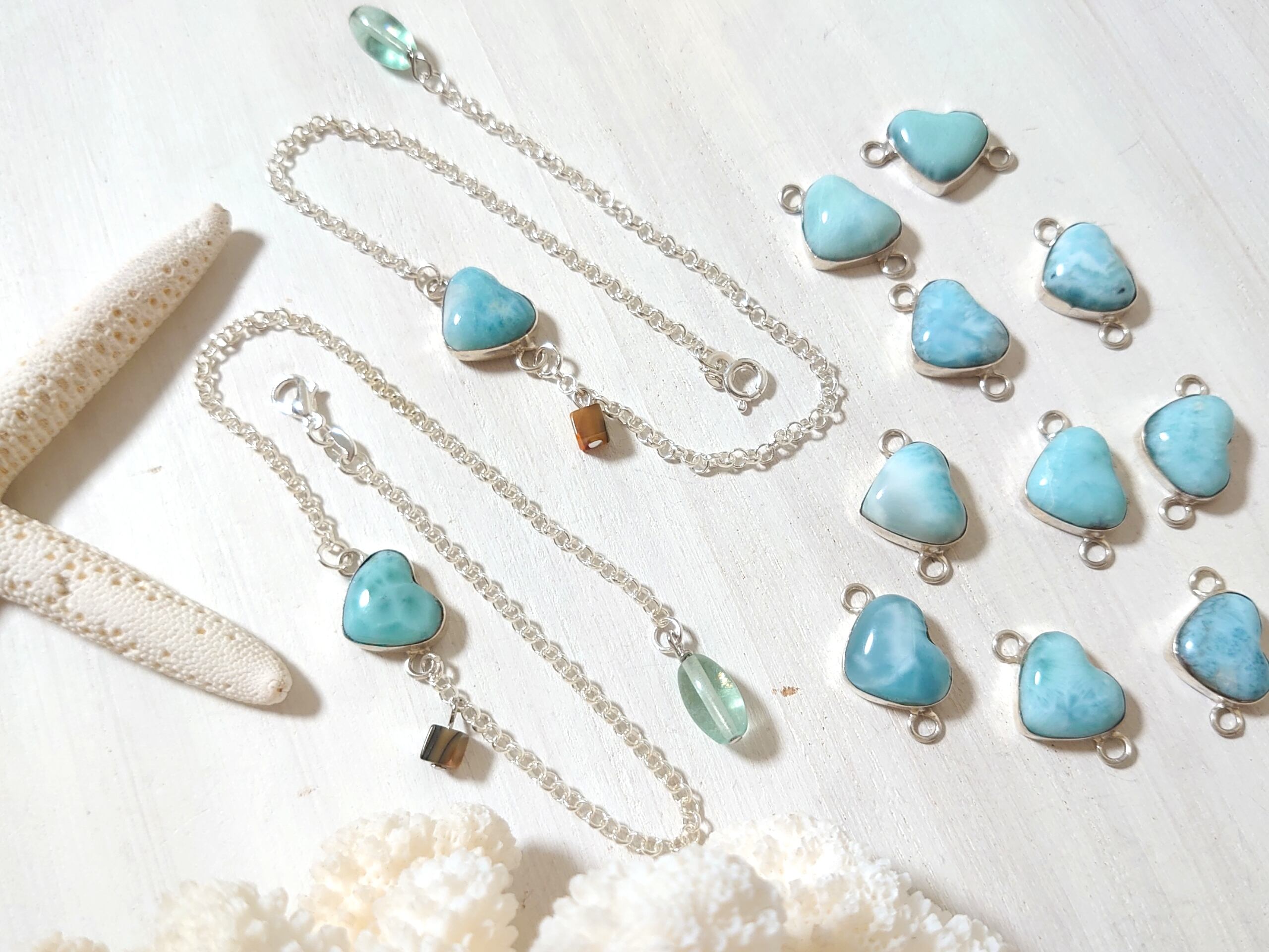 海の欠片のようなドミニカ共和国直輸入の可愛いハートラリマー、透明感バッチリのフローライト、大人カラーのアバロンシェルを使った