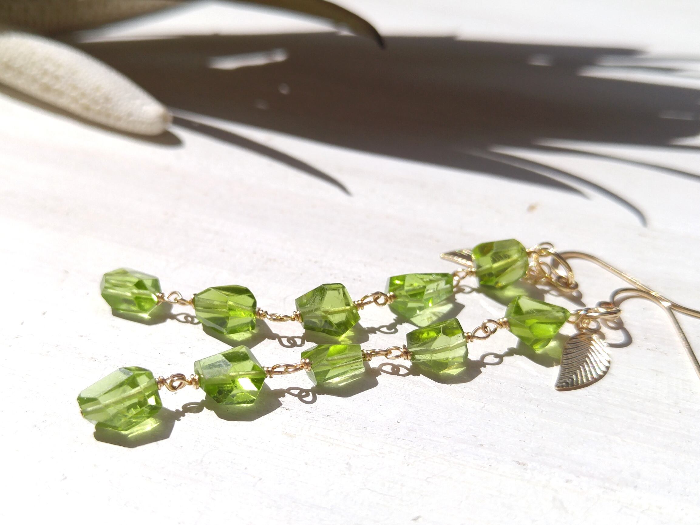 Forest Crystals(14kgf)-贅沢♪宝石質ペリドット 大人素敵なロングピアス-