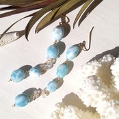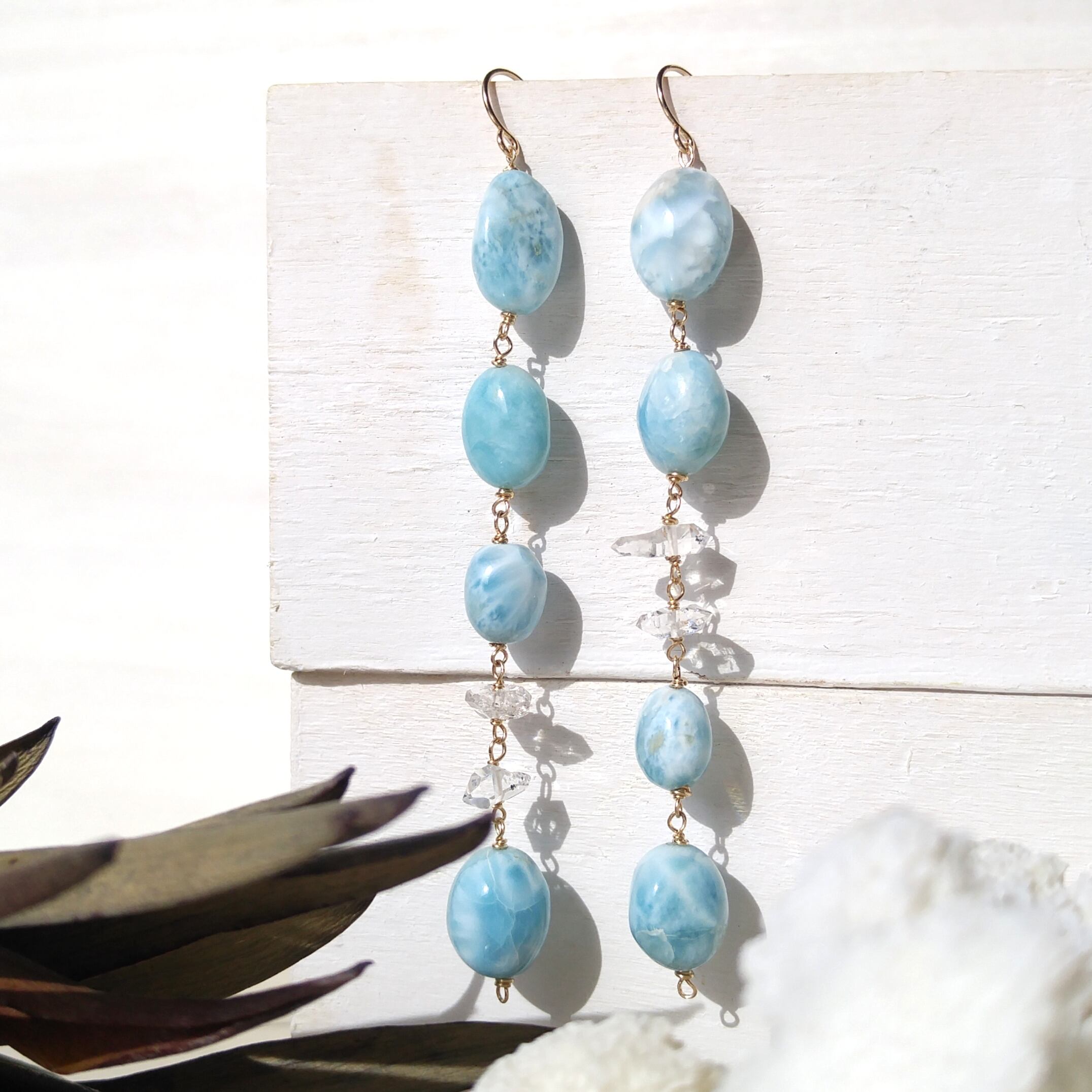 ♡Sea Berry(14kgf)♡ー海玉のようなハイクラス〜ハイクオリティラリマー&ハーキマーダイヤモンド シンプル大人可愛いロングピアスー