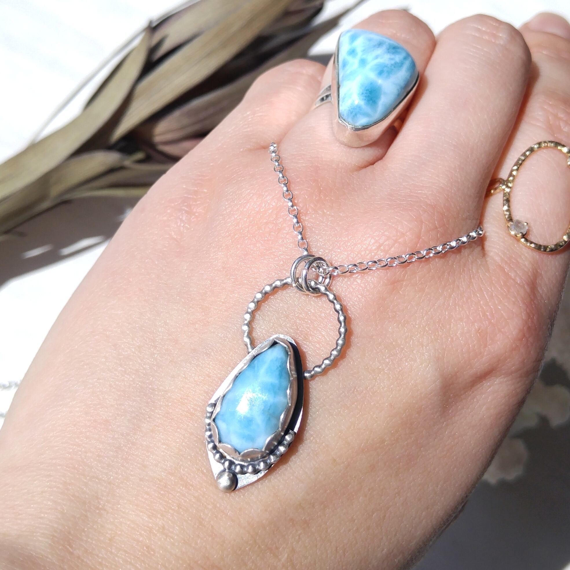ドミニカ共和国直輸入のオーシャンブルーのハイクオリティラリマーを使った