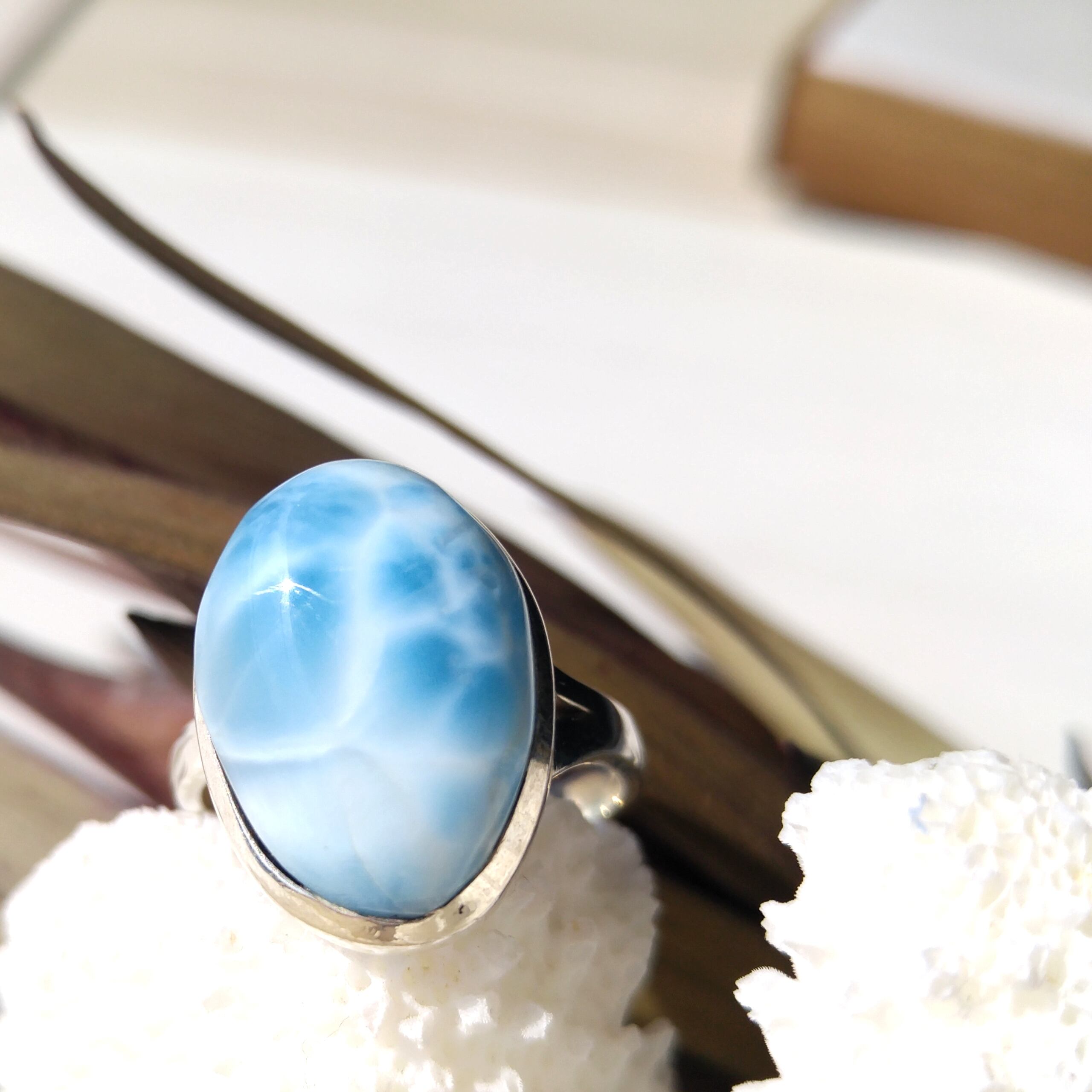 ◆ラリマーは撮影が難しい石です。写真はなるべく実物に近いお色で撮影するように心がけておりますが、ディスプレイやモニター、天候などによって差異が生じることがあります。特に携帯などの小さい画面では通常よりも濃く色が出るようです。ご了承ください。