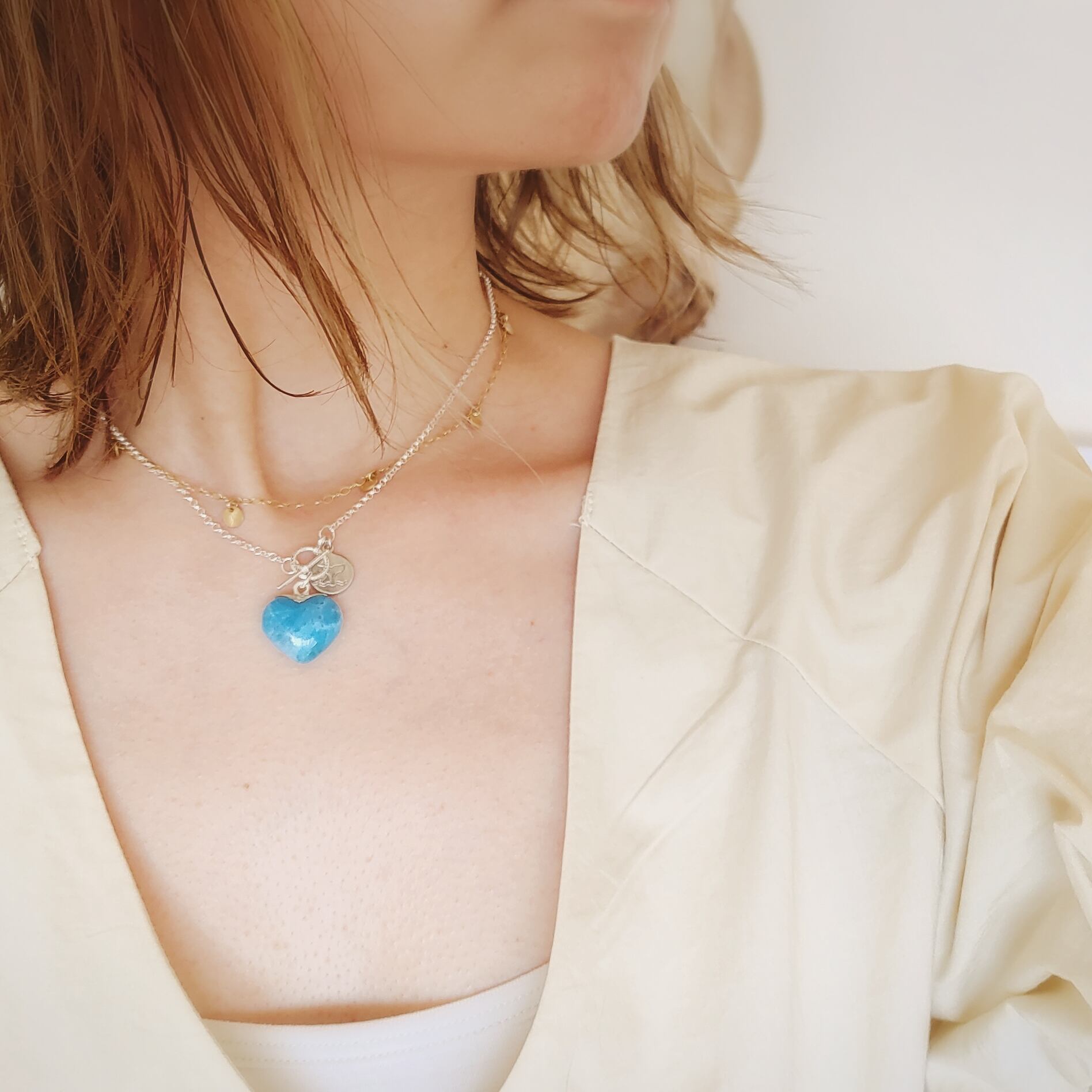 揺れる海色のハートが可愛すぎるネックレスです。