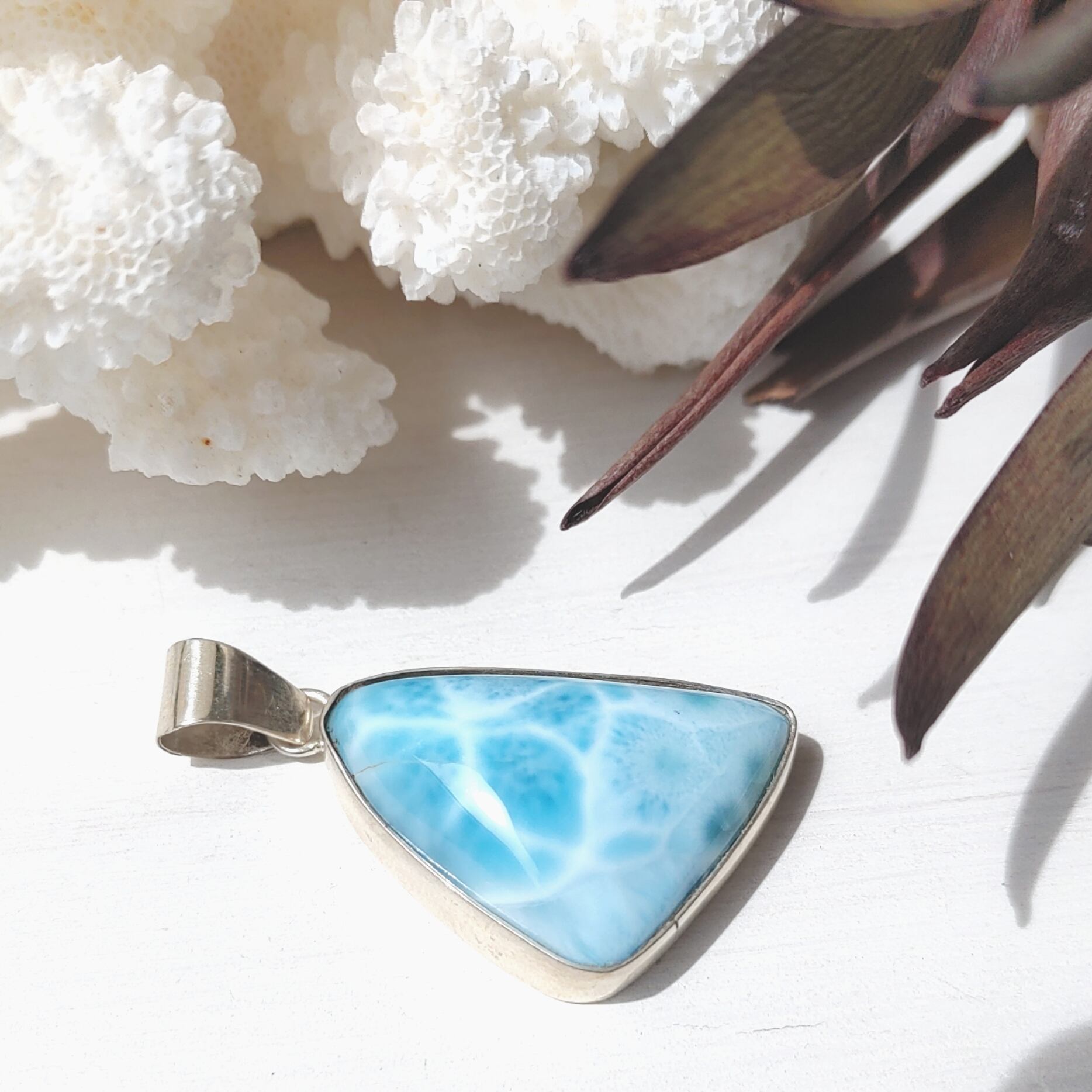✧Sea triangle larimar✧-ハッキリ波模様♪美しいハイクオリティ スタイリッシュなラリマーペンダントsilver925
