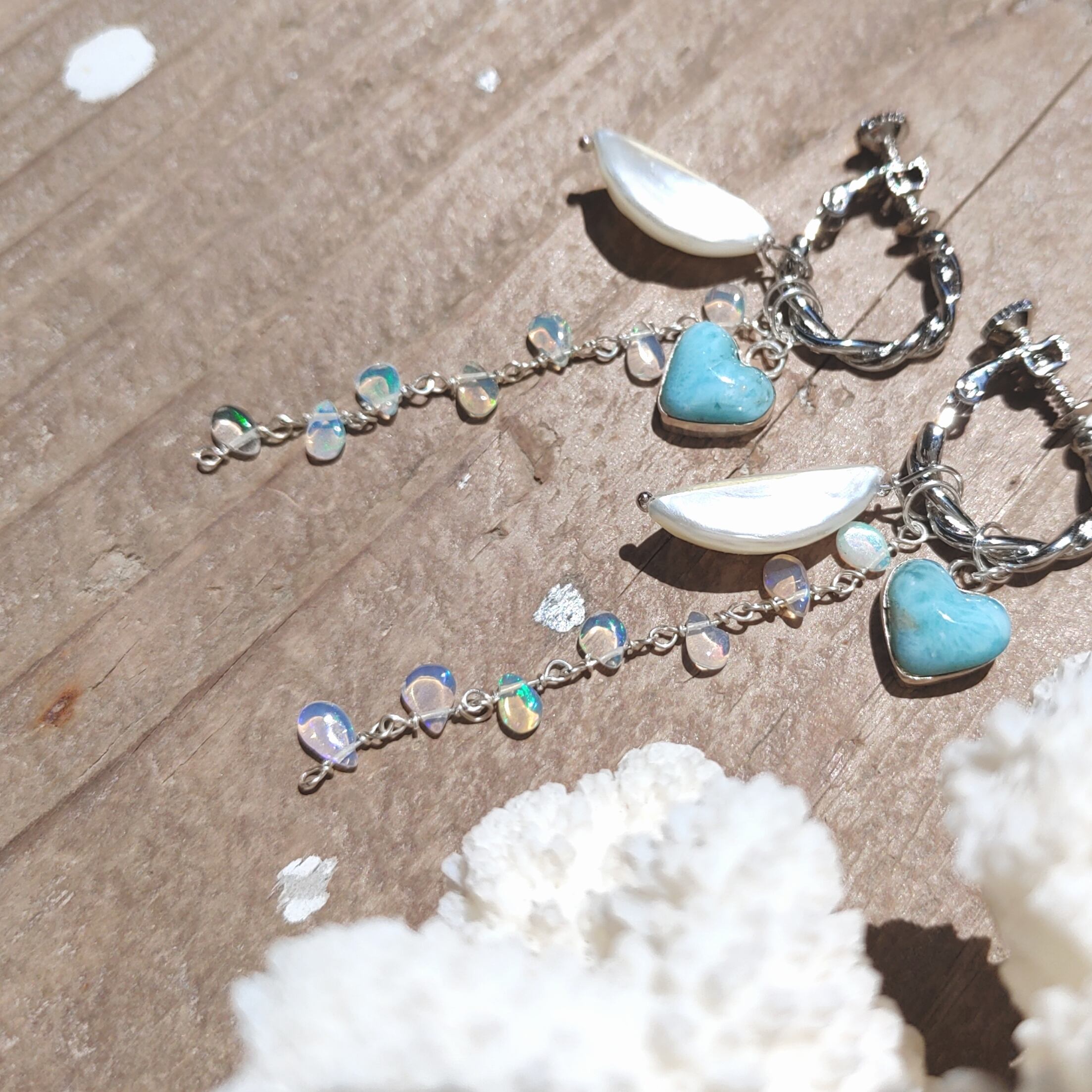 超サプライズ!!♡Multi sea earrings♡-プレシャスオパール&ハートラリマーなど 何通りにも楽しめる大人可愛いイヤリング-