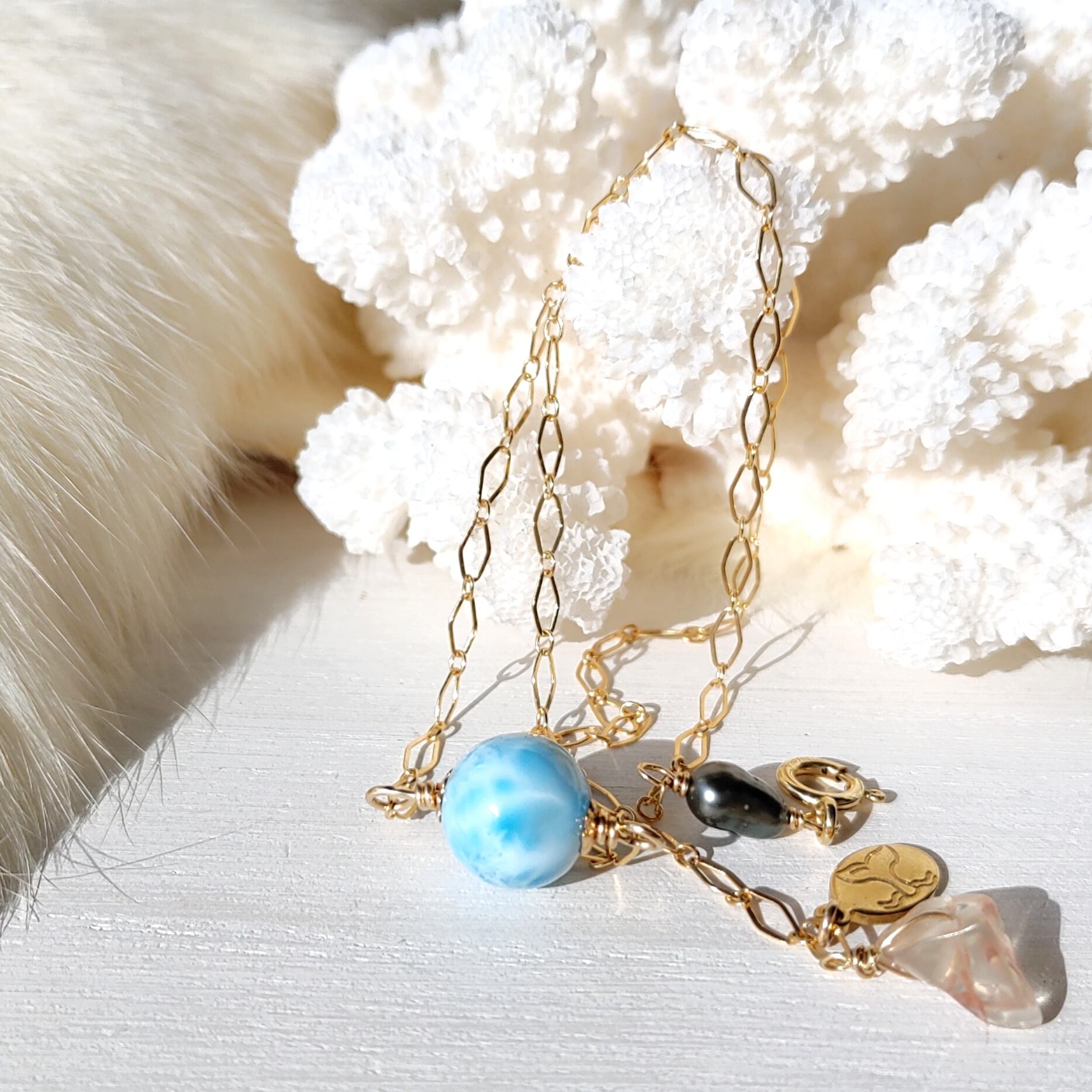 ♡美しい地球♡❁3way Larimar earth necklace All 14kgf❁超トップクオリティラリマー