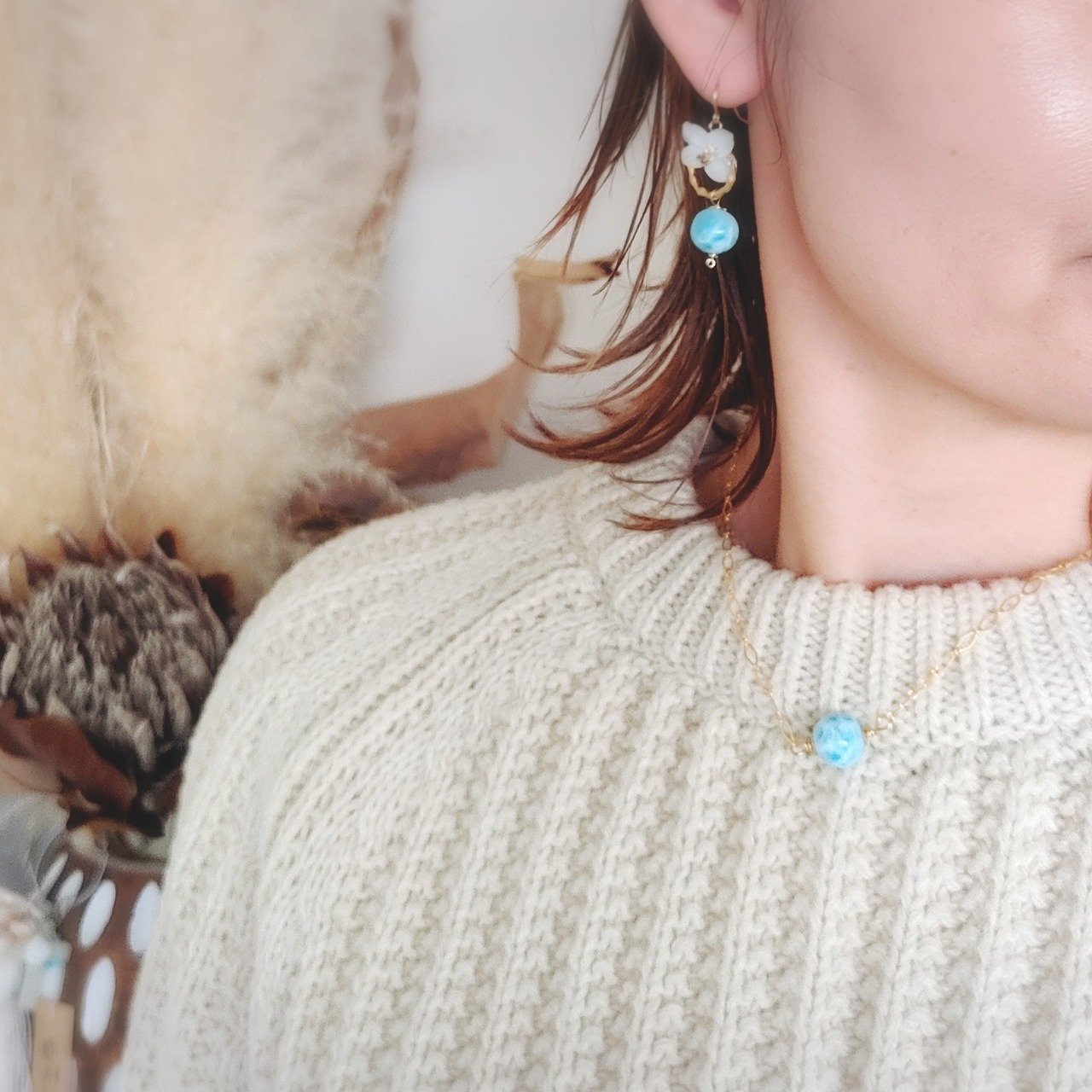 ひとつで着けてもブルーが映える美しいラリマーの一粒地球ネックレス。