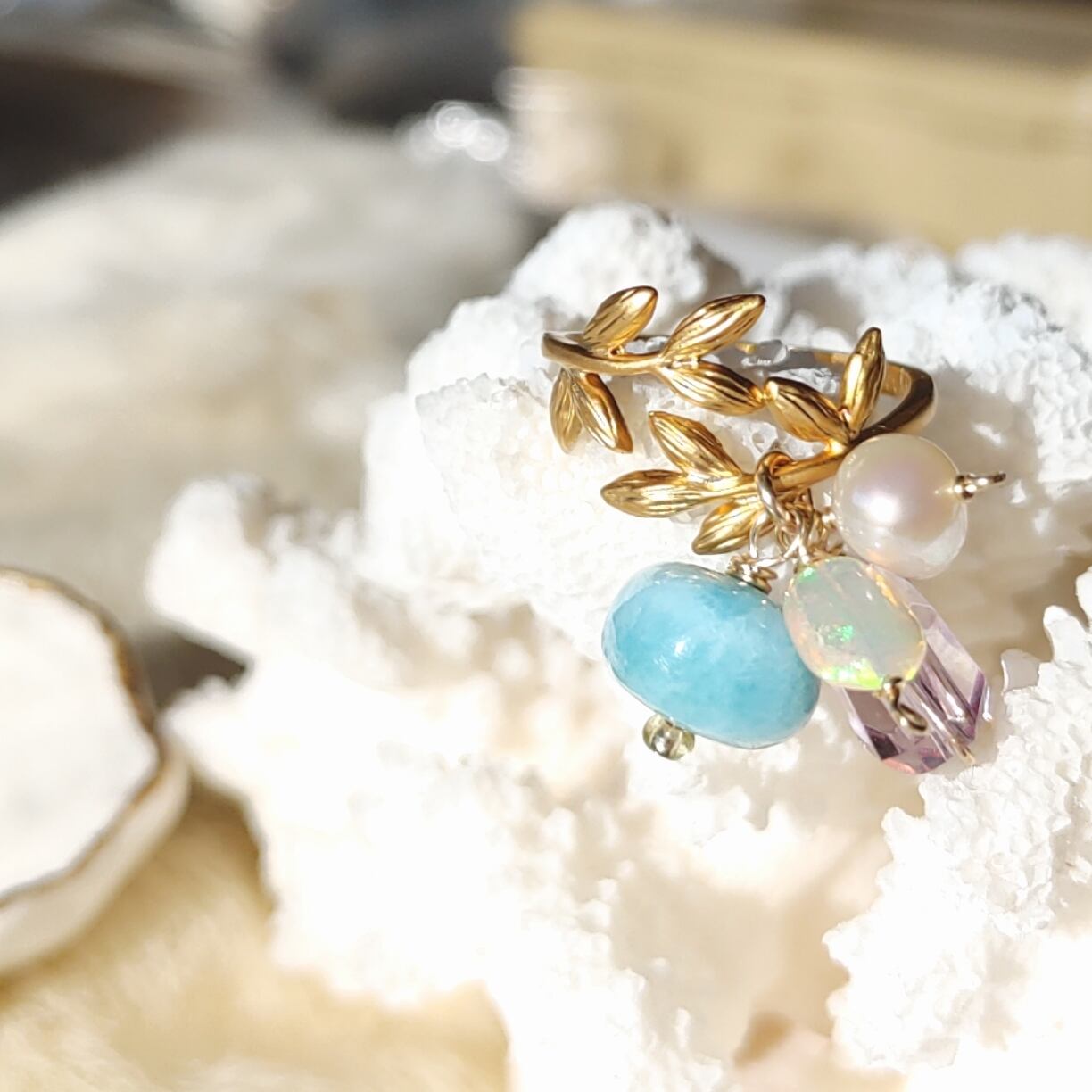 ♡サプライズ♡人魚姫の指輪(14kgf)約11号-可愛いキレイなラリマー-