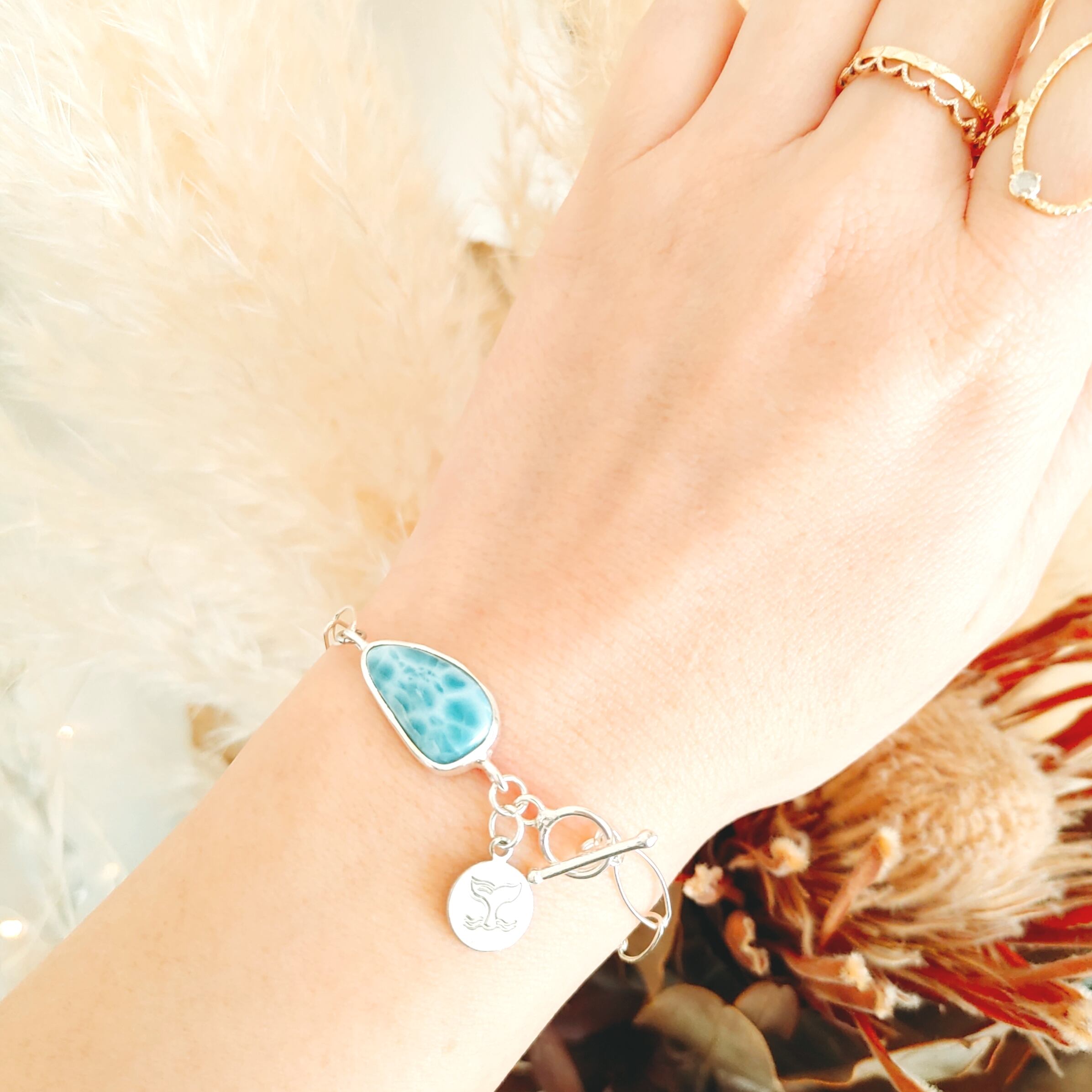 ♡Larimar&Italian chain Bracelet silver925♡-ハイクオリティラリマー