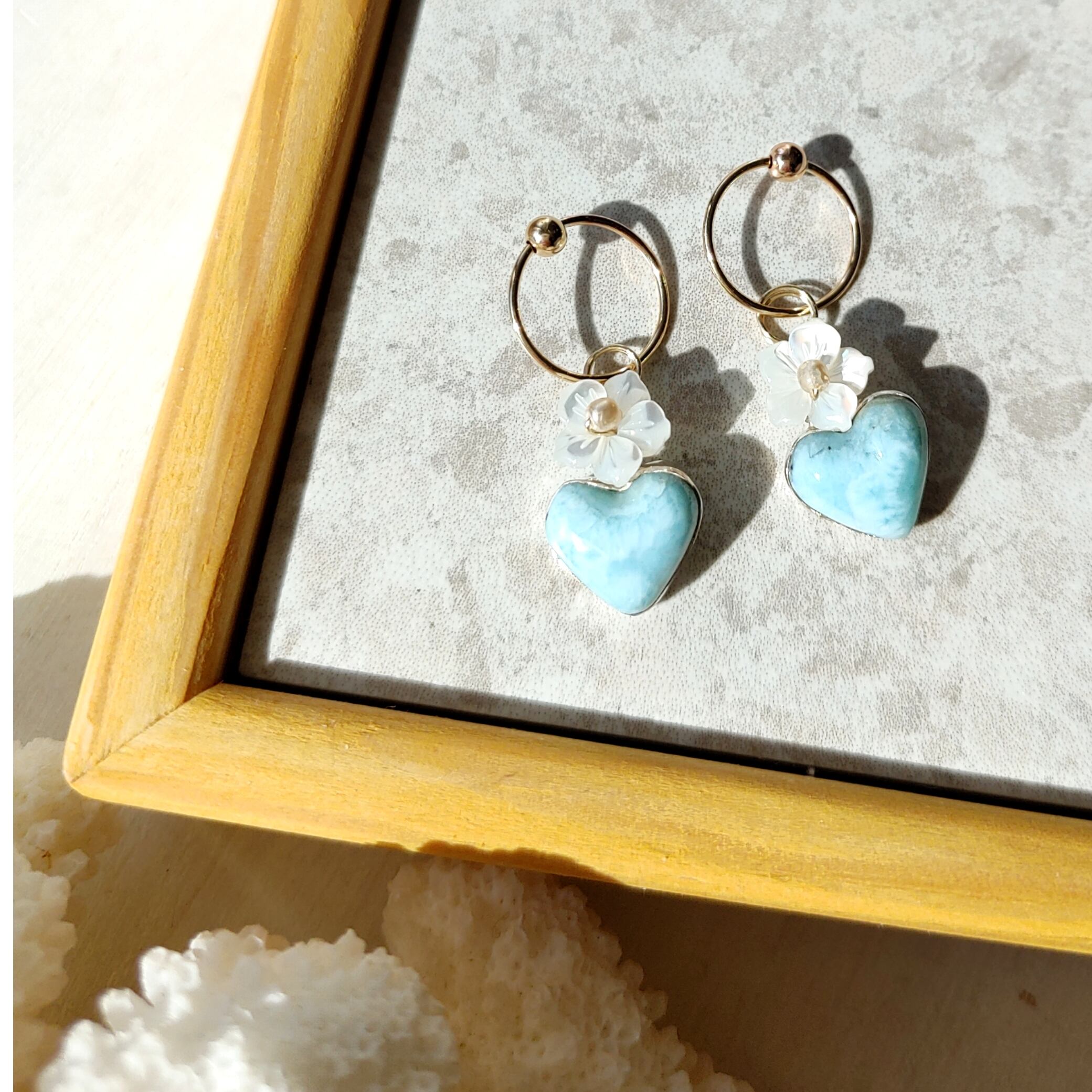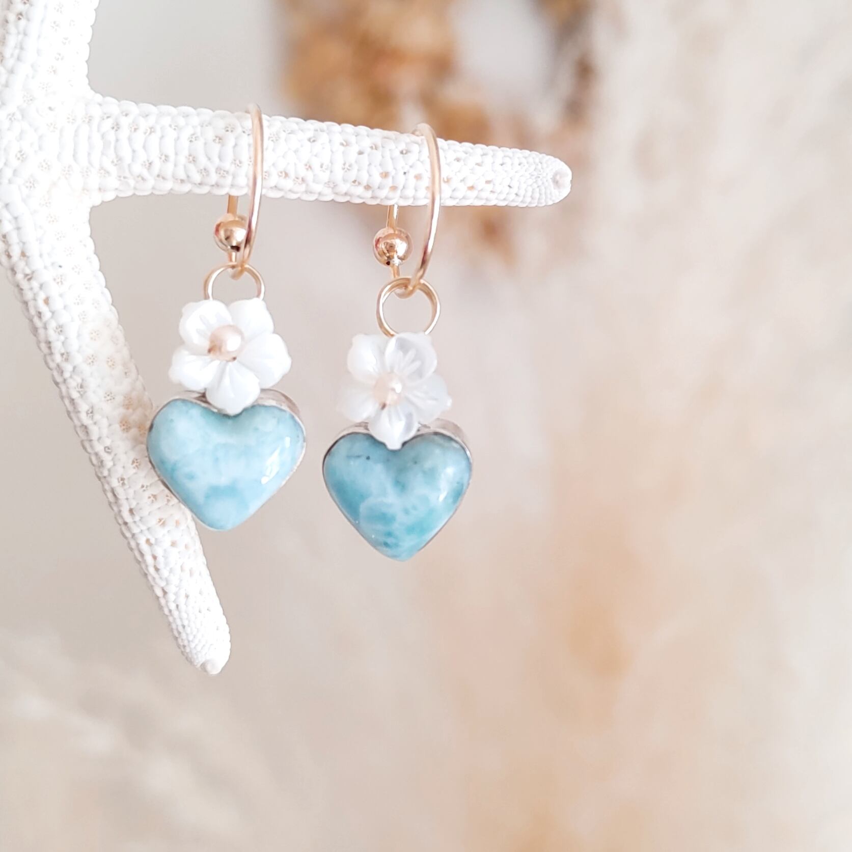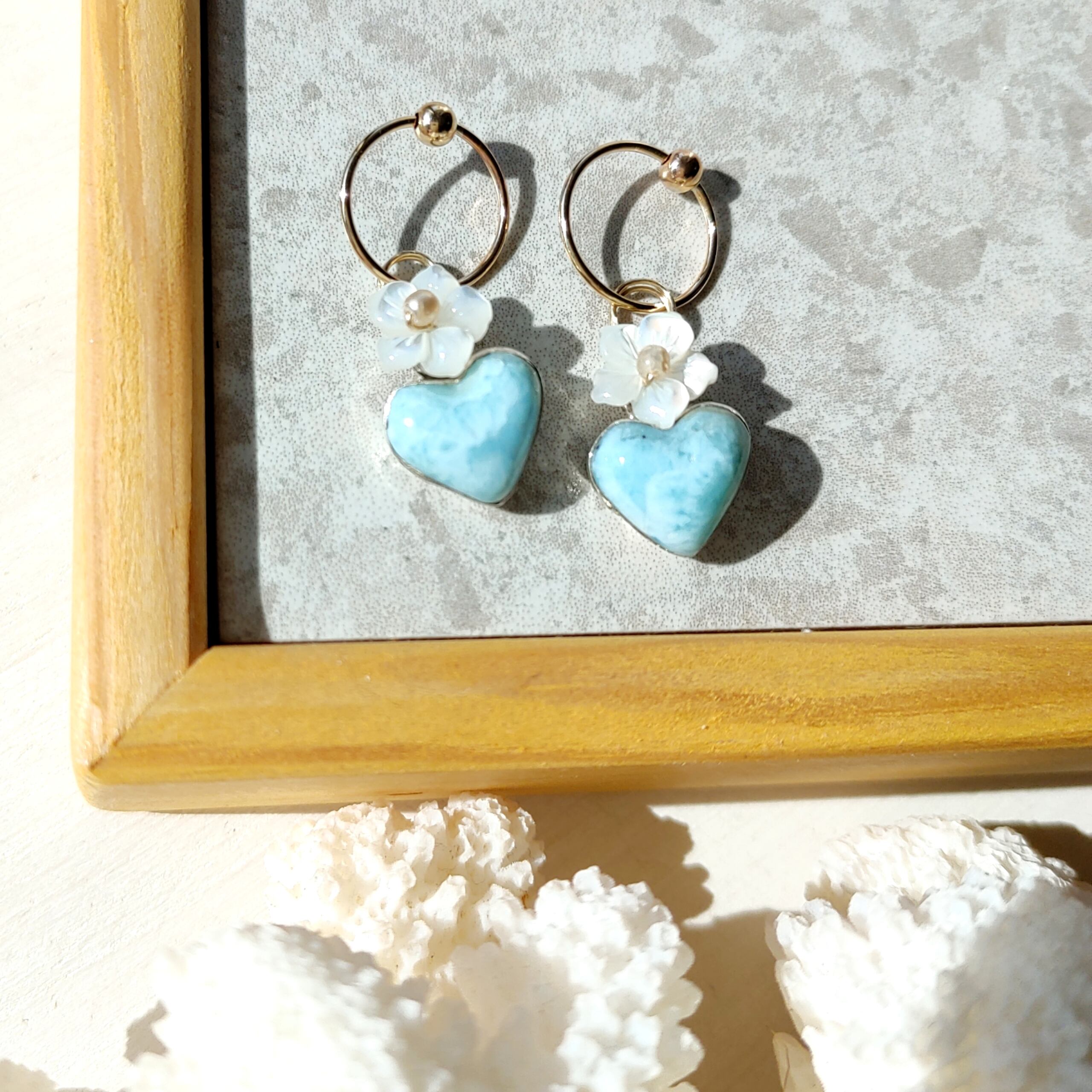 ♡Larimar heart&flower earrings 14kgf&silver925♡