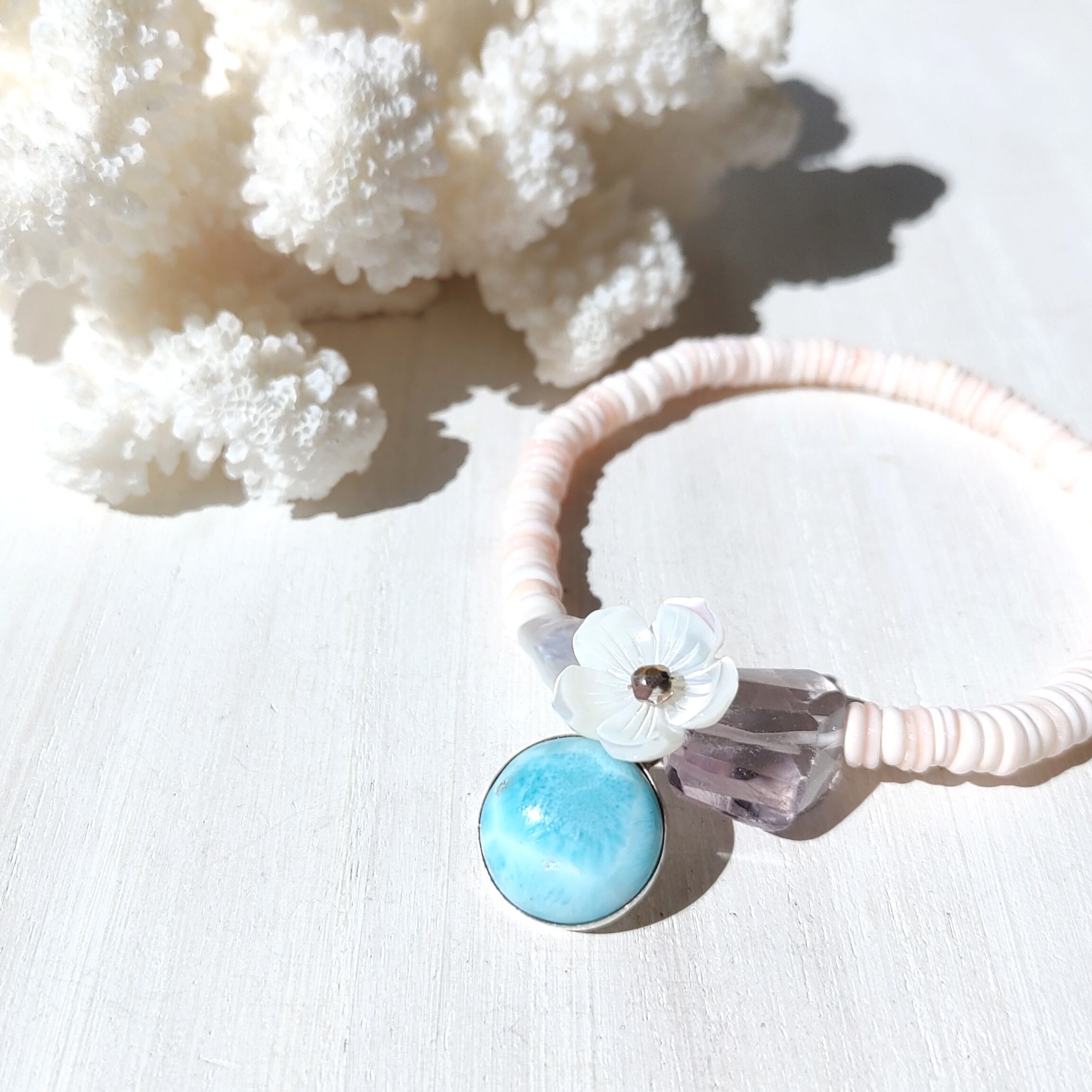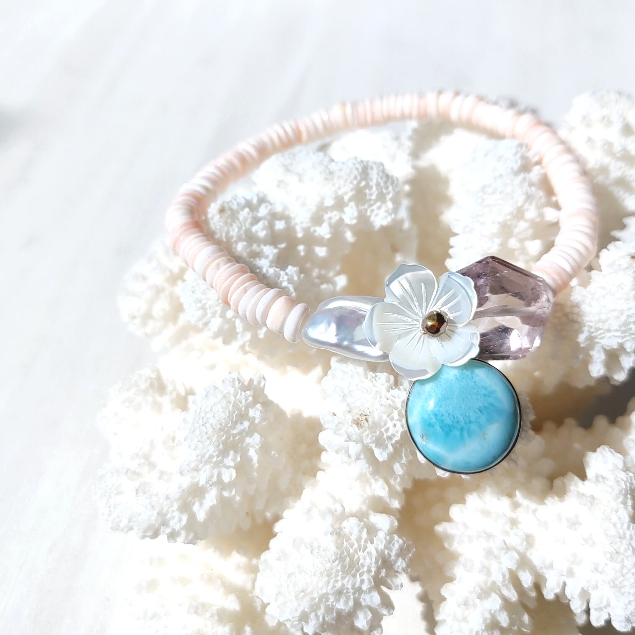 ❁Pink Sand Beach Bouquet bracelet❁美しいラリマー&ピンクシェル