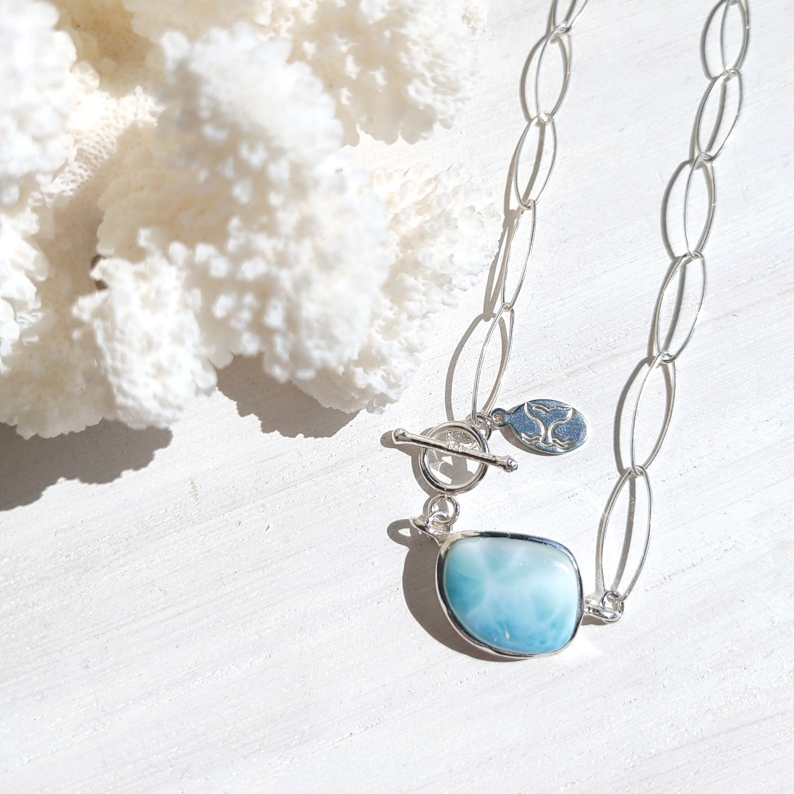 ♡Larimar&Italian chain Necklace silver925♡-ハイクオリティラリマー