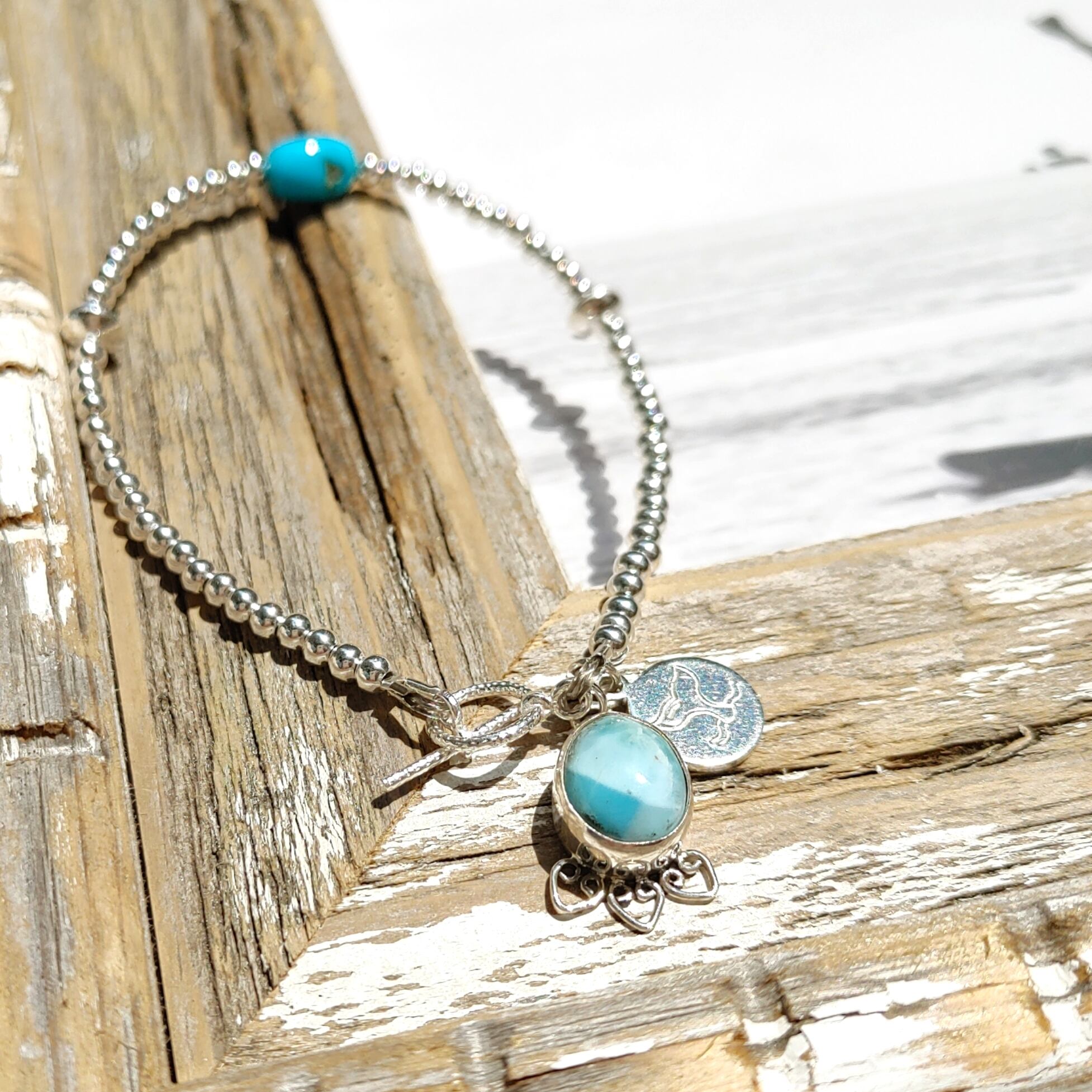 美しいスリーピングビューティーターコイズ、ドミニカ共和国直輸入の可愛いラリマー、Silver925ballを贅沢に使った