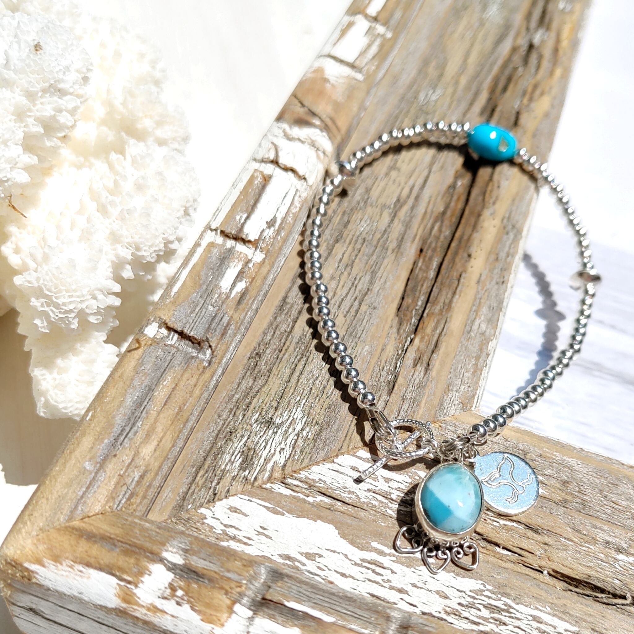 ♡Sky&Sea bracelet all silver925♡ ラリマー&スリーピングビューティーターコイズ