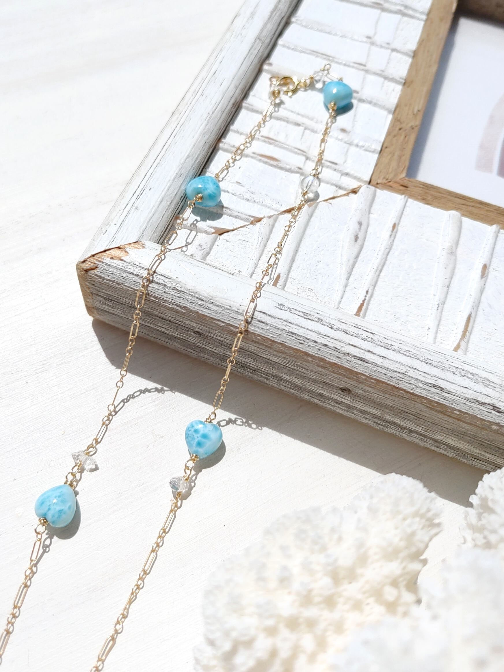 ❁Heart larimar station necklace All 14kgf❁美しい超トップクオリティハートラリマー&ハーキマーダイヤモンド
