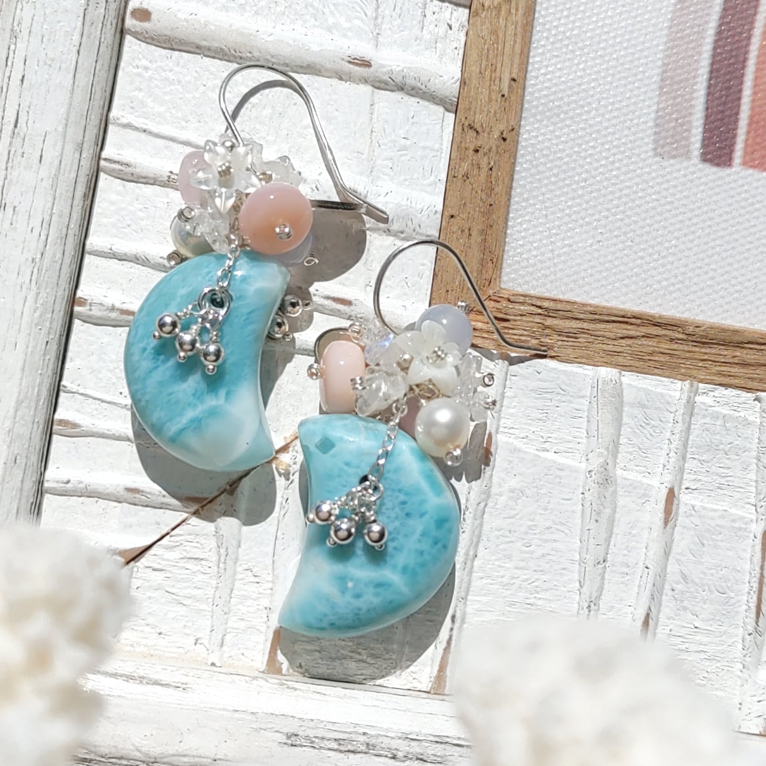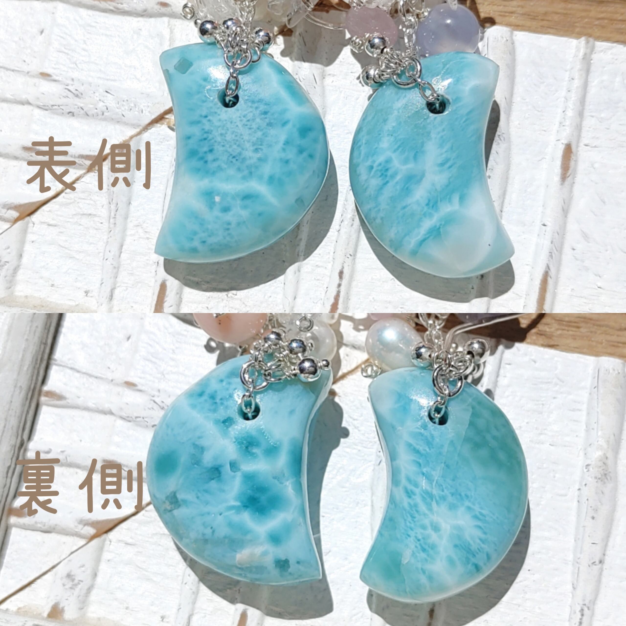 ☽☽ Sea larimar moon earrings All silver925 ☾☾超ハイクオリティラリマー