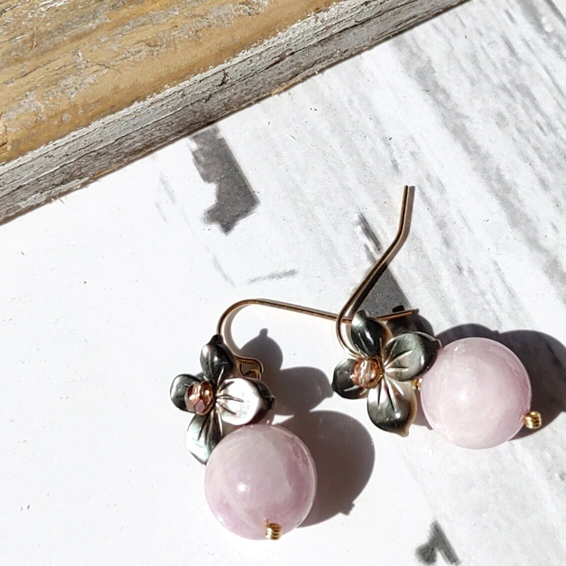 ❁Sakura Candy earrings All 14kgf❁甘辛MIX!貴重なナイジェリア産クンツァイト