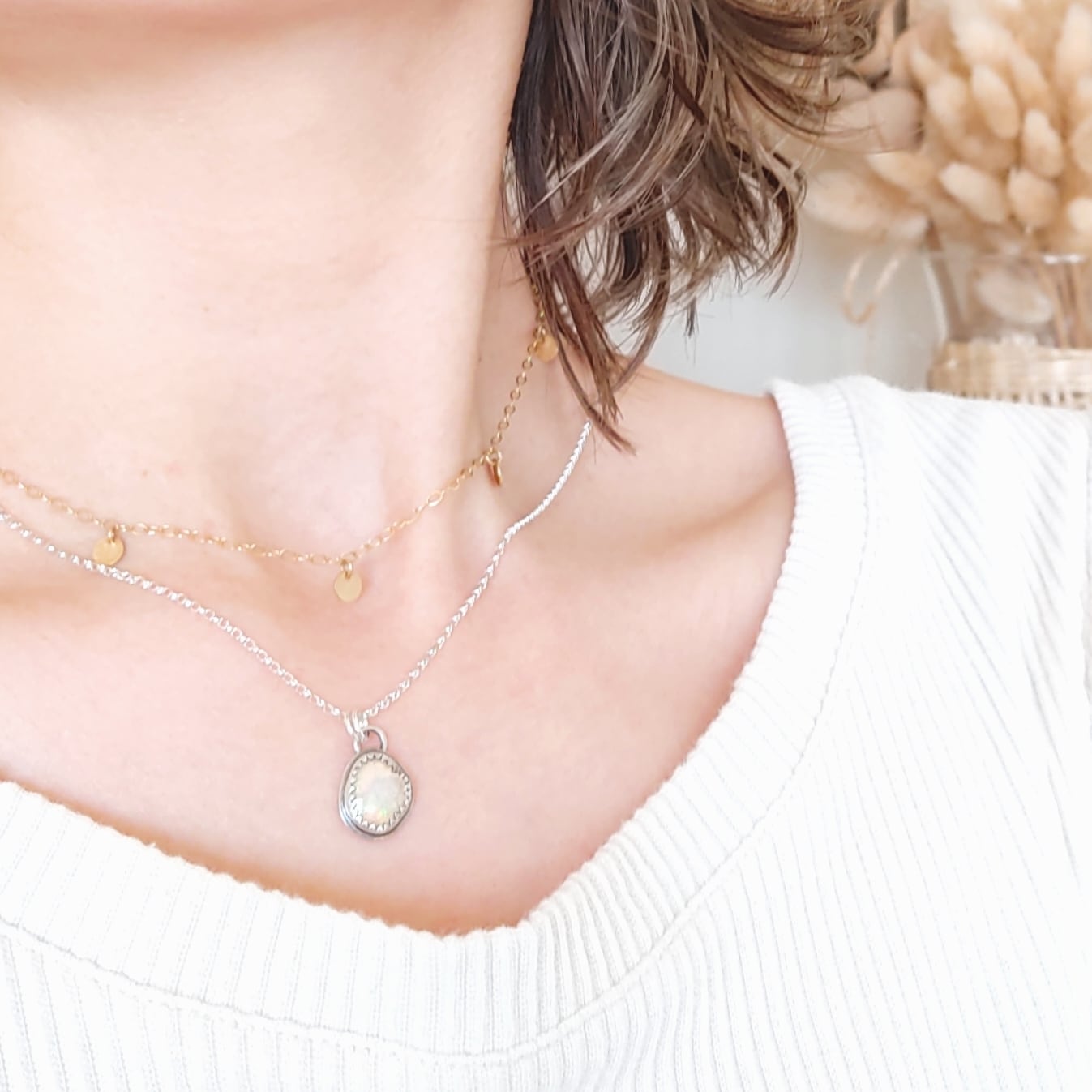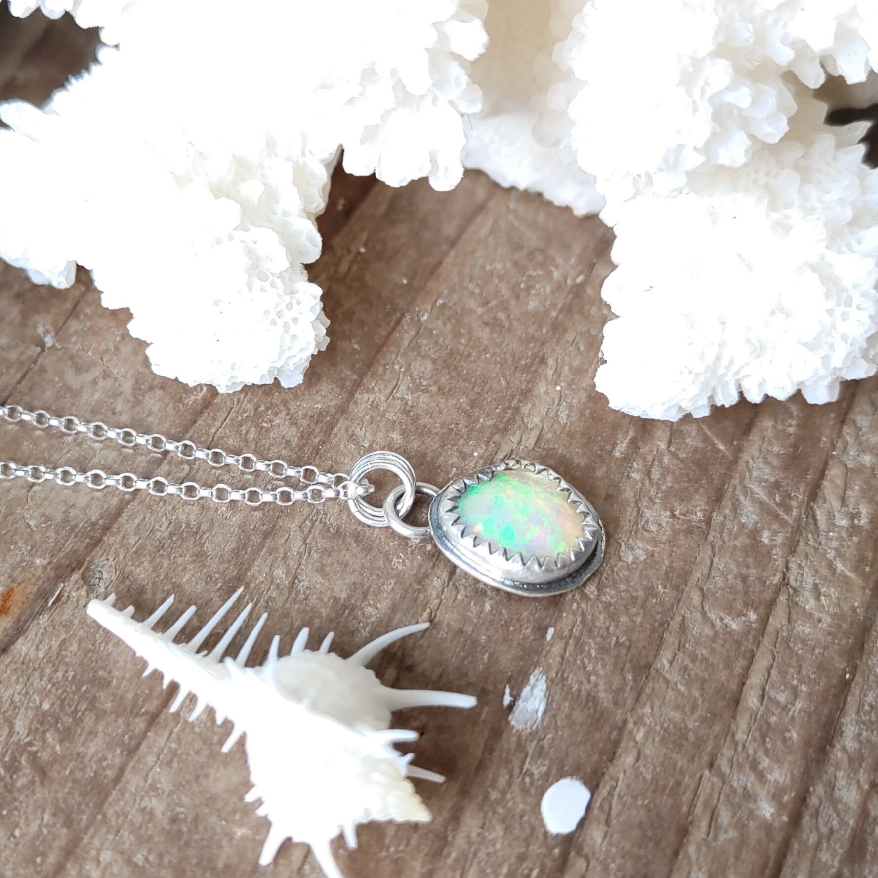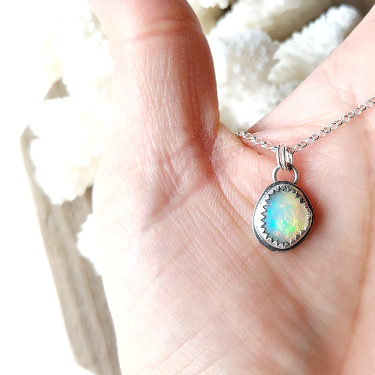 虹色の煌めきが美しいAAAプレシャスオパールを使った