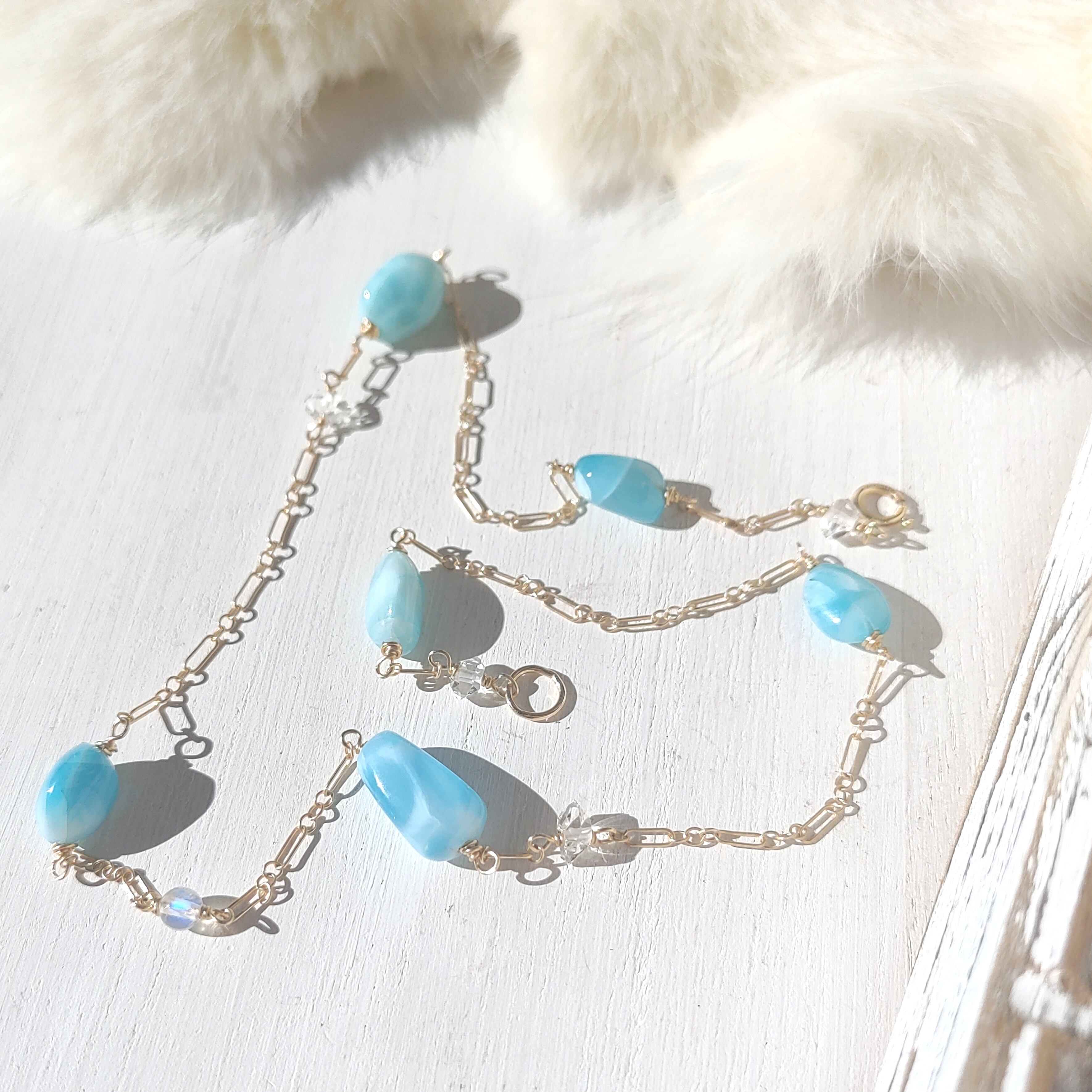 ❁Larimar station necklace All 14kgf❁美しい超トップクオリティラリマー&ハーキマーダイヤモンド