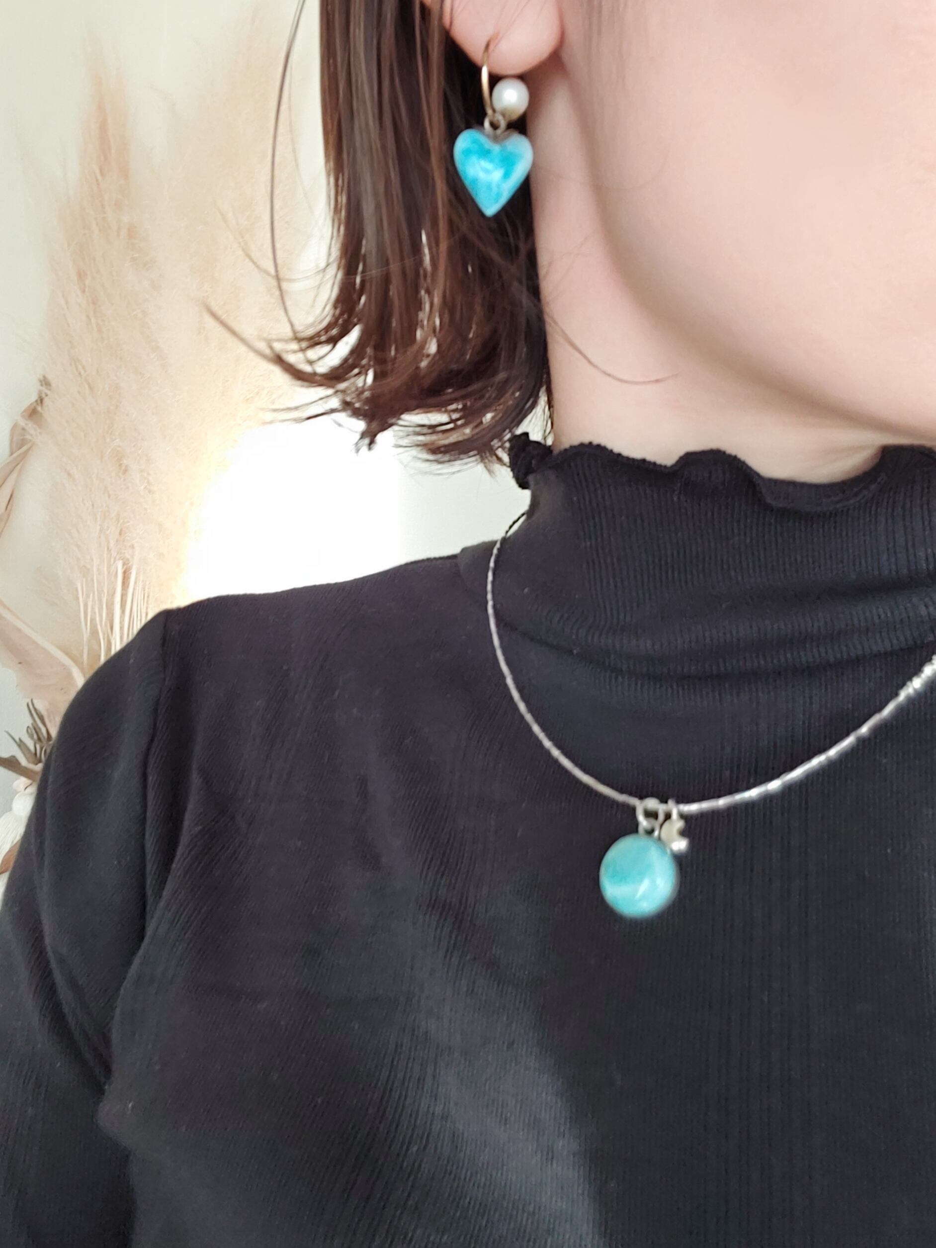 宇宙から見る美しい水の惑星のような♡青いラリマーが首元で映えて、パッと目を引きます。