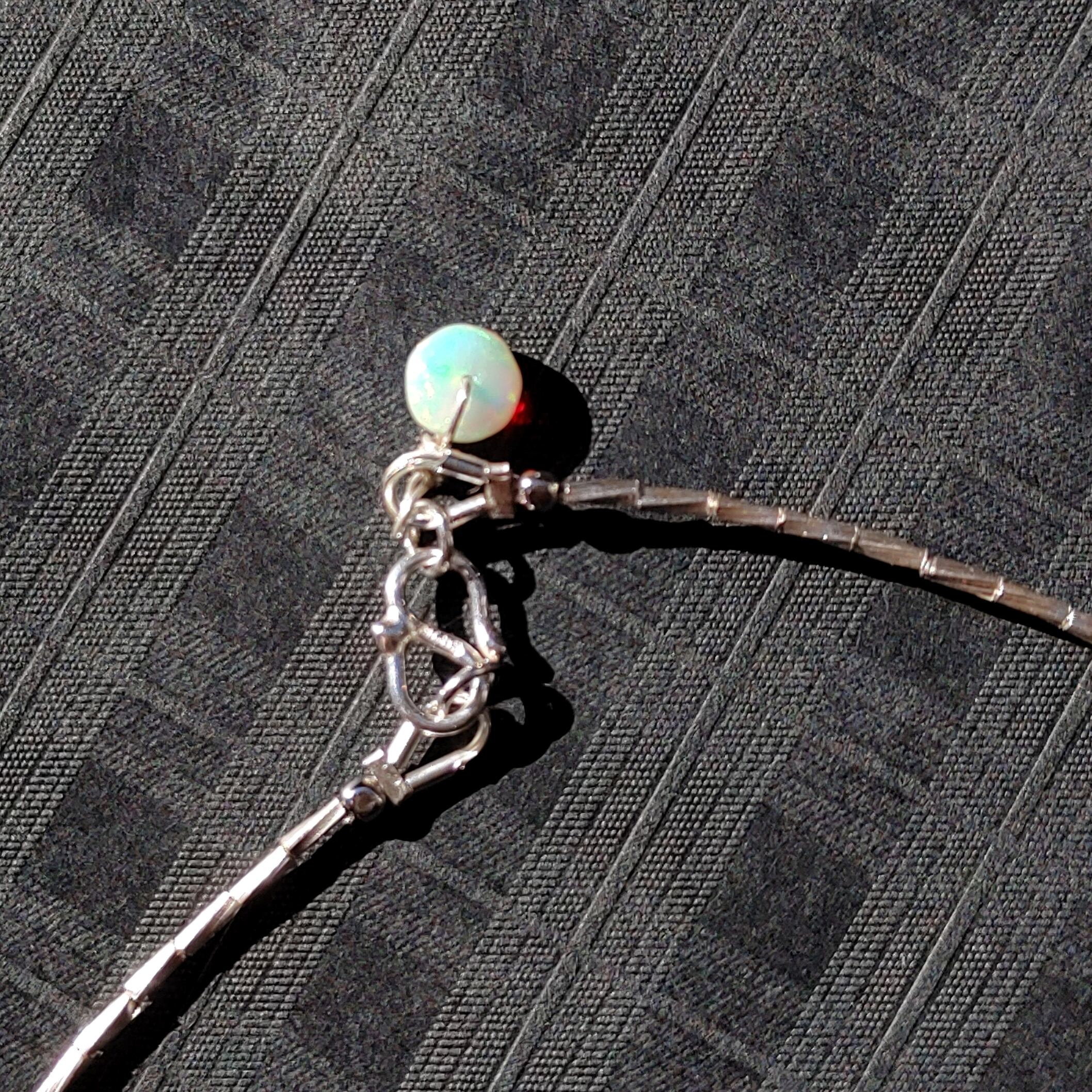 留め金具は使いやすいS字で、ここにもエチオピアンオパールを。