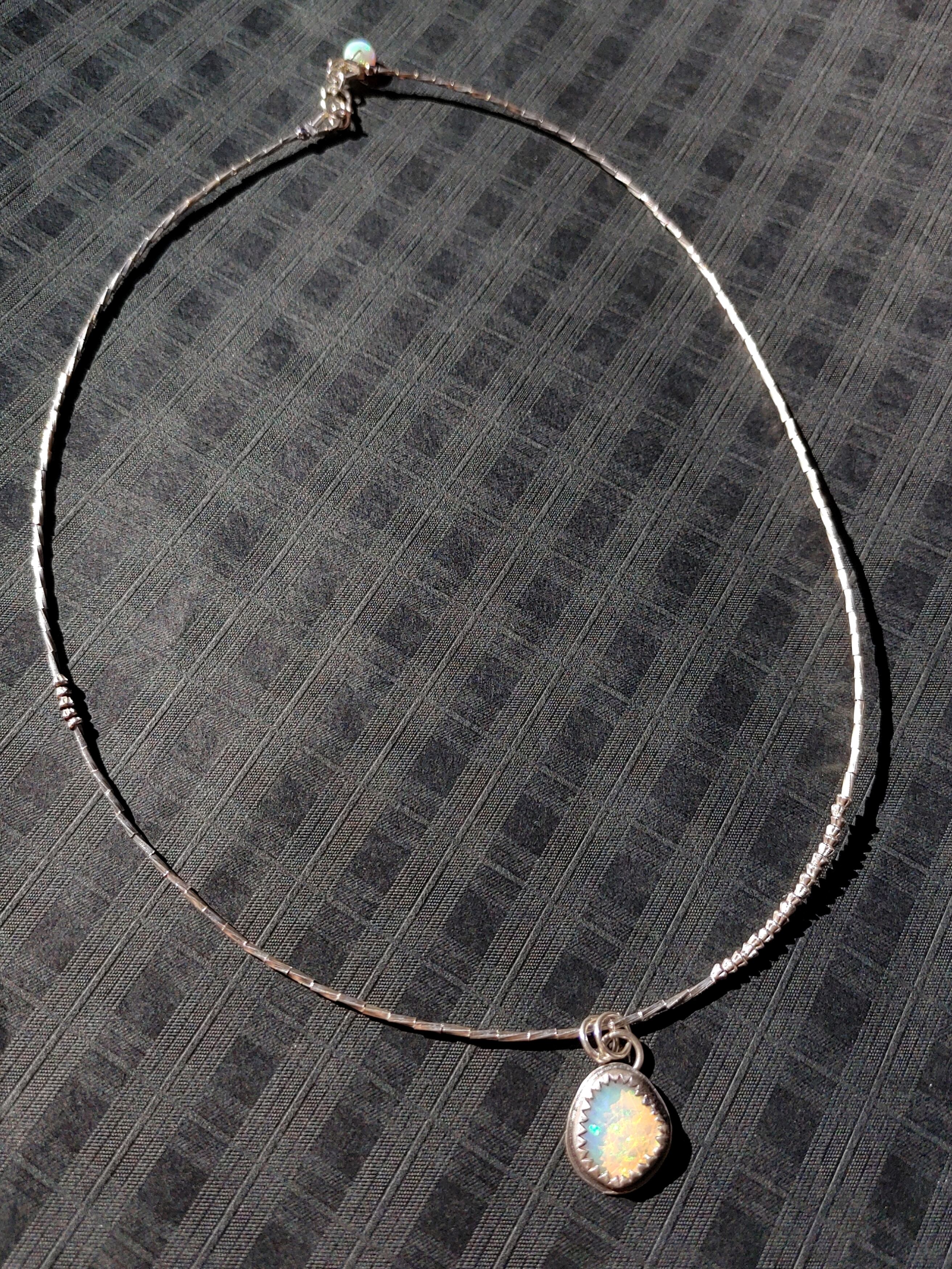❁Rainbow tear necklace All silver925❁宝石質エチオピアンプレシャスオパール