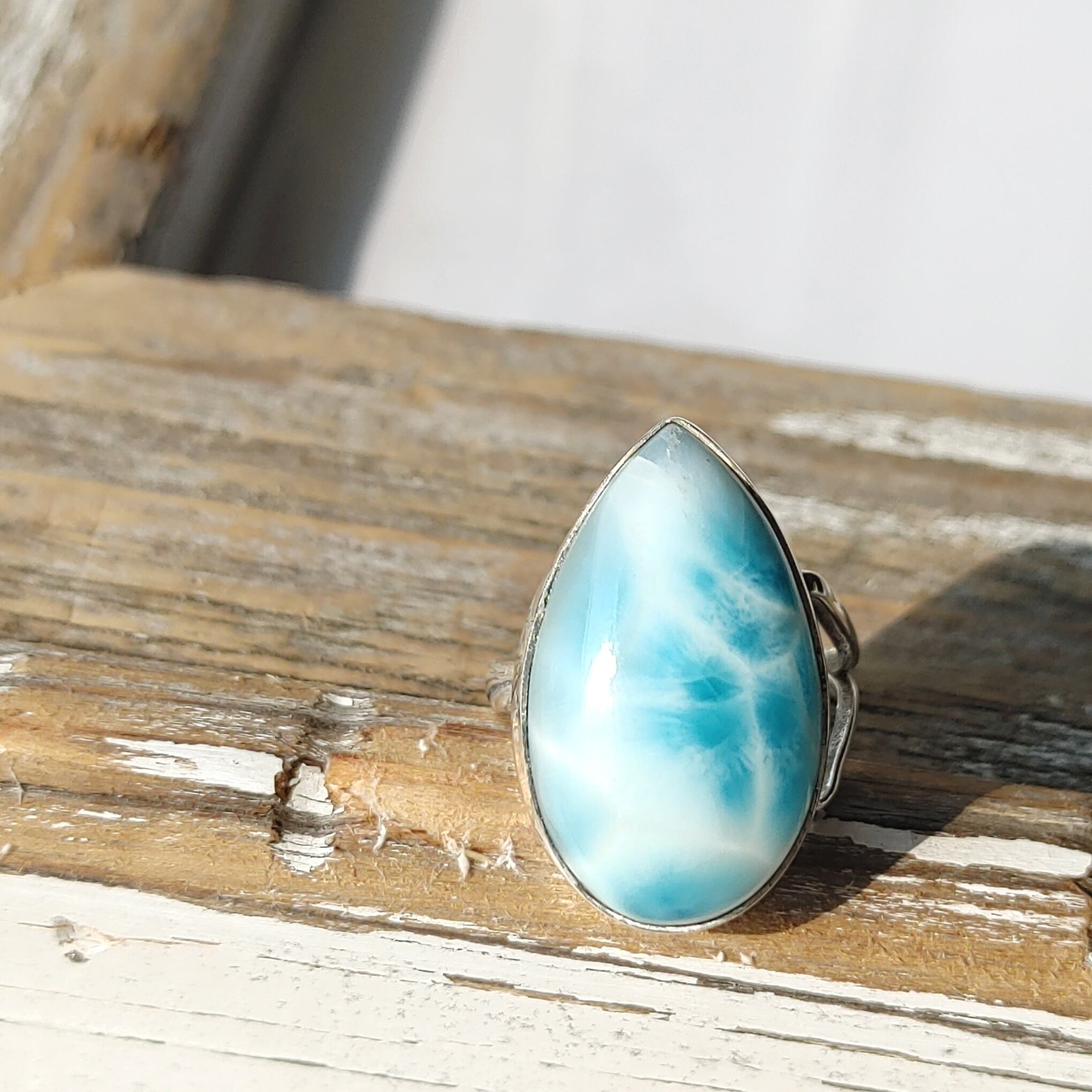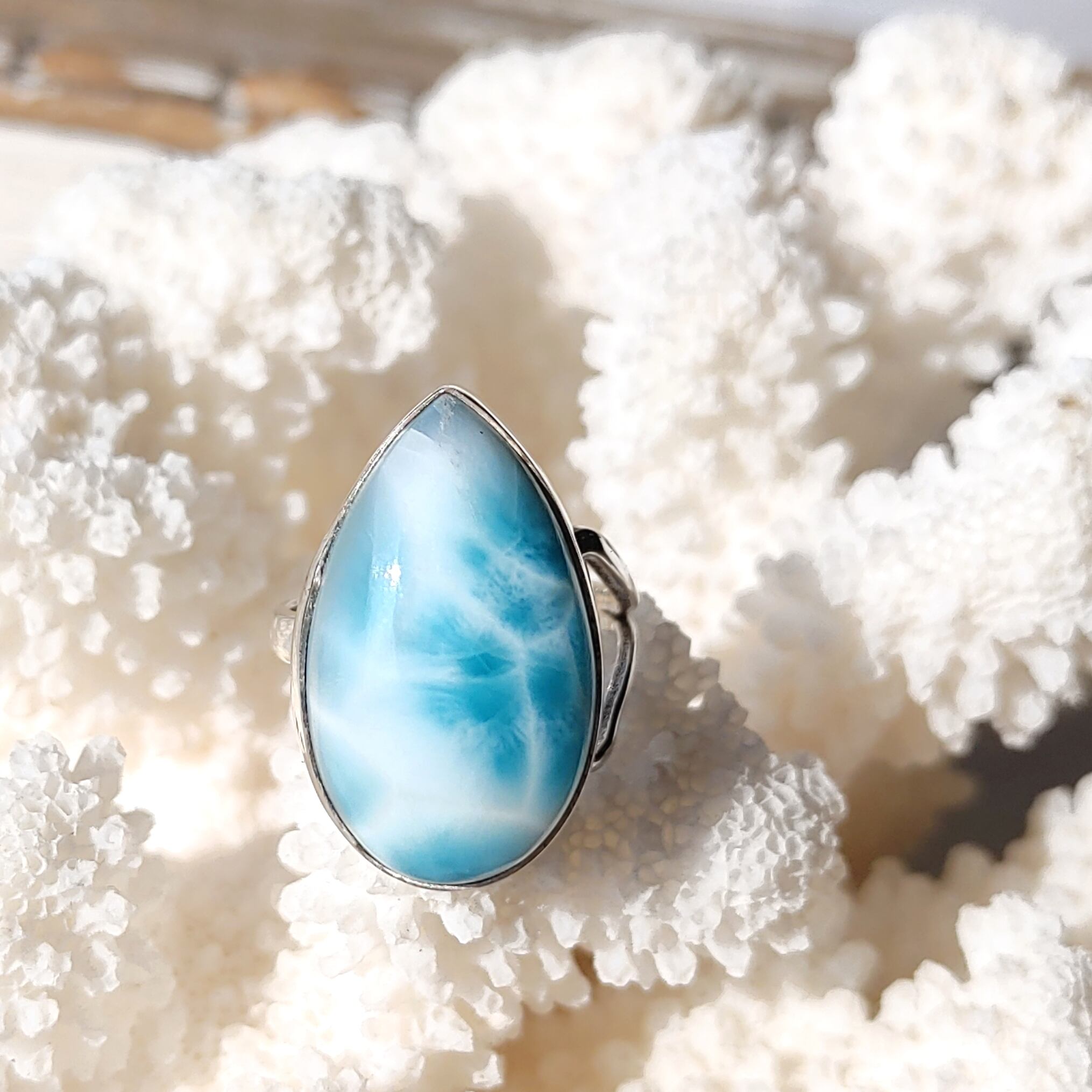 ♡ぷるんぷるん♡❁Ocean blue tear larimar ring silver925 約10.5号❁トップクオリティラリマー