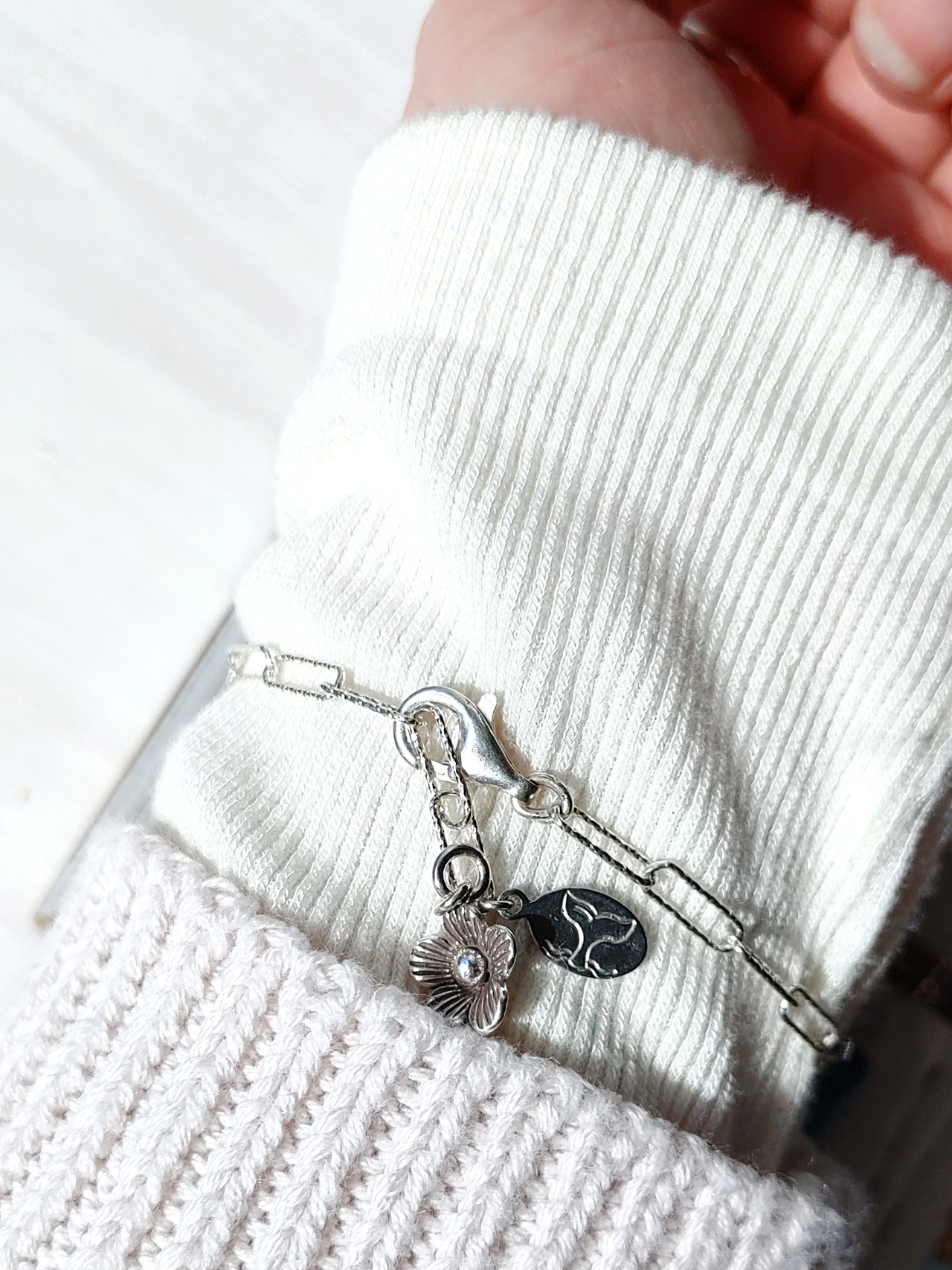 チェーンのエンドには私のお気に入りの可愛いお花のチャームをプラス。