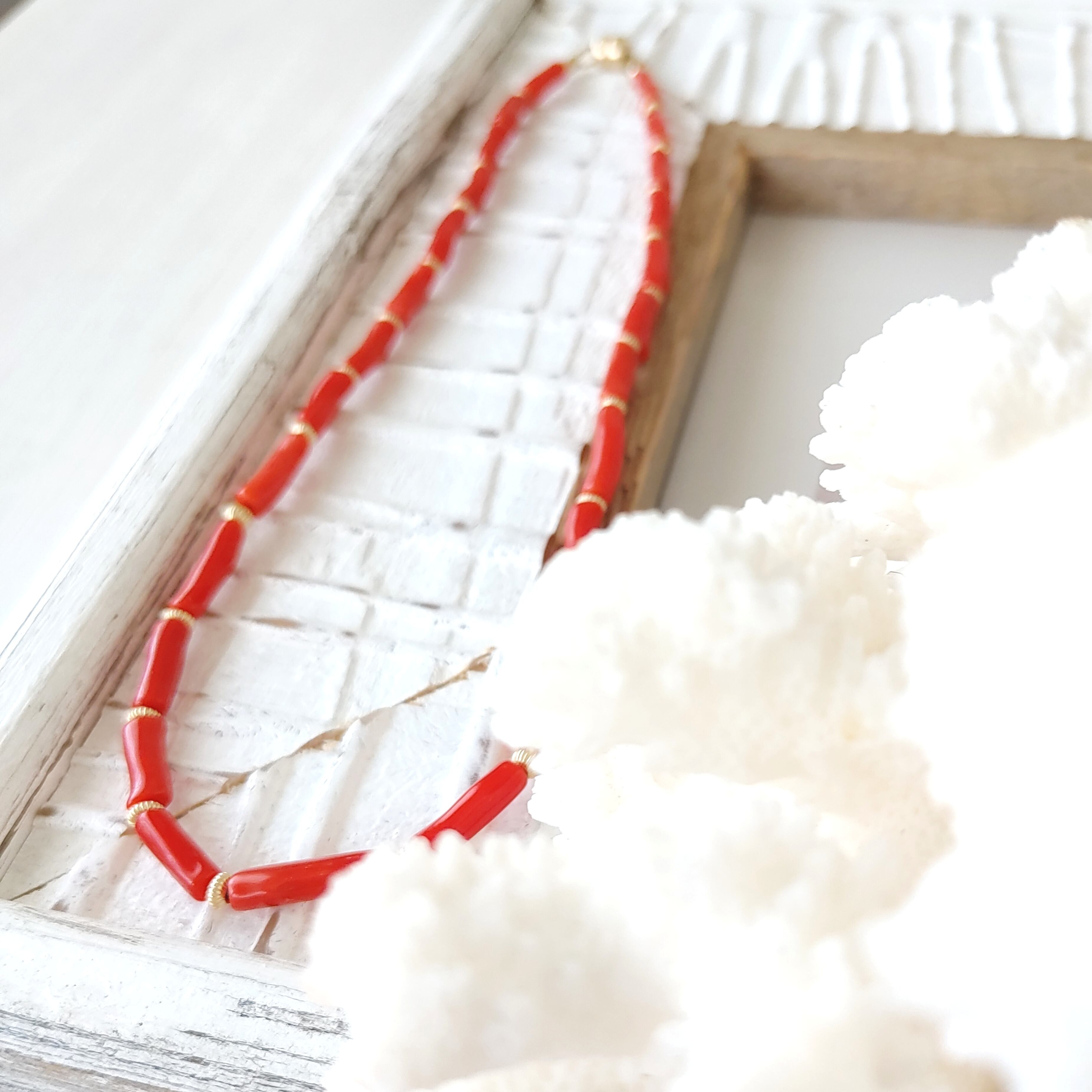 ❁Red coral choker necklace All 14kgf❁イタリア産 天然宝石 血赤本珊瑚