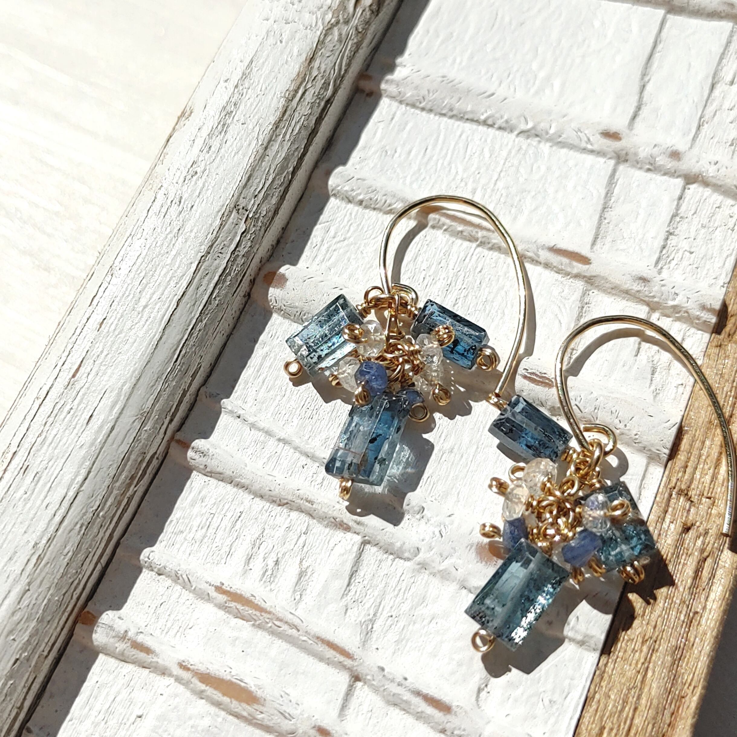 ❁Ocean&Ice earrings All 14kgf❁稀少なティールブルーカイヤナイト
