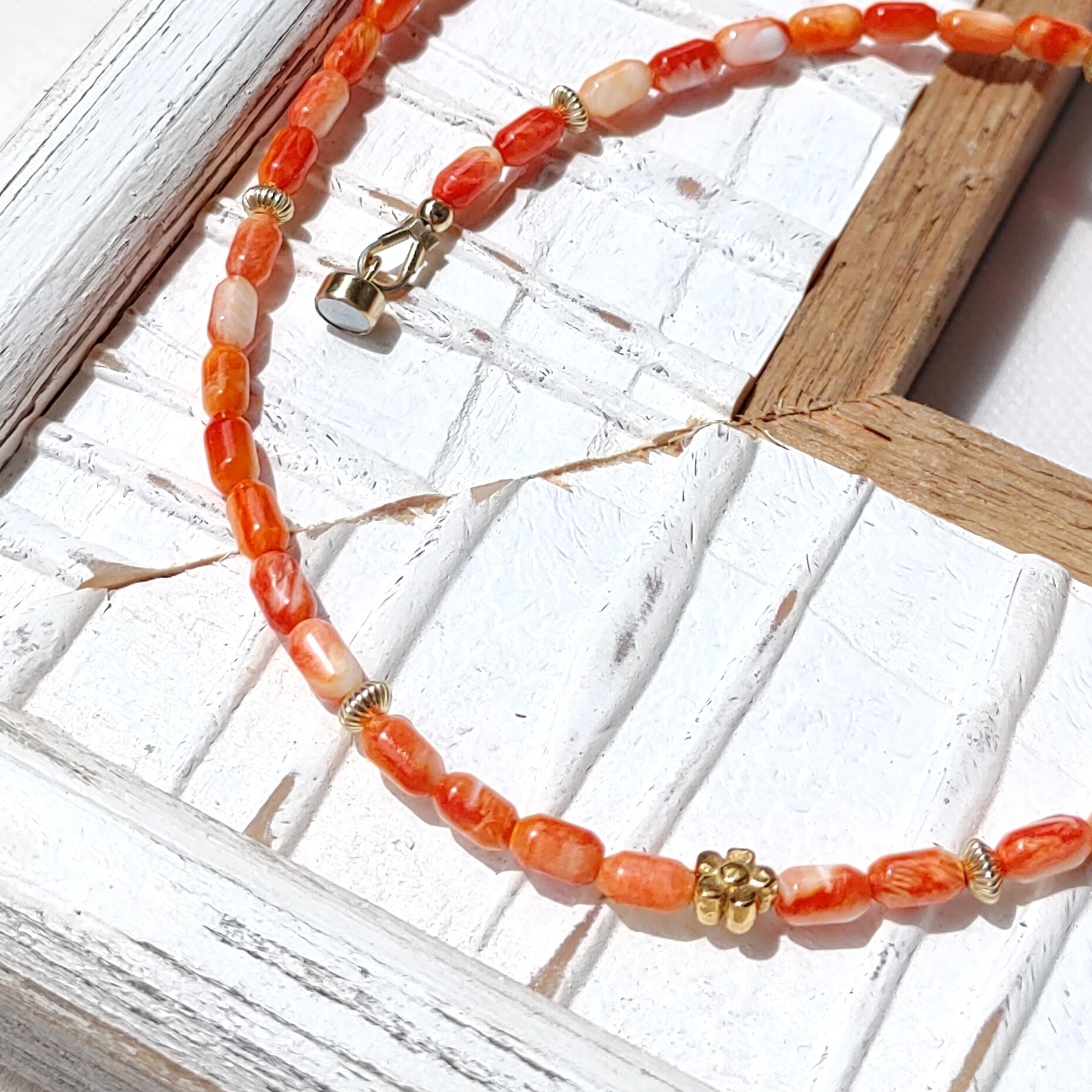 鮮やかなレッドオレンジの美しいスパイニーオイスターシェルを使いました。