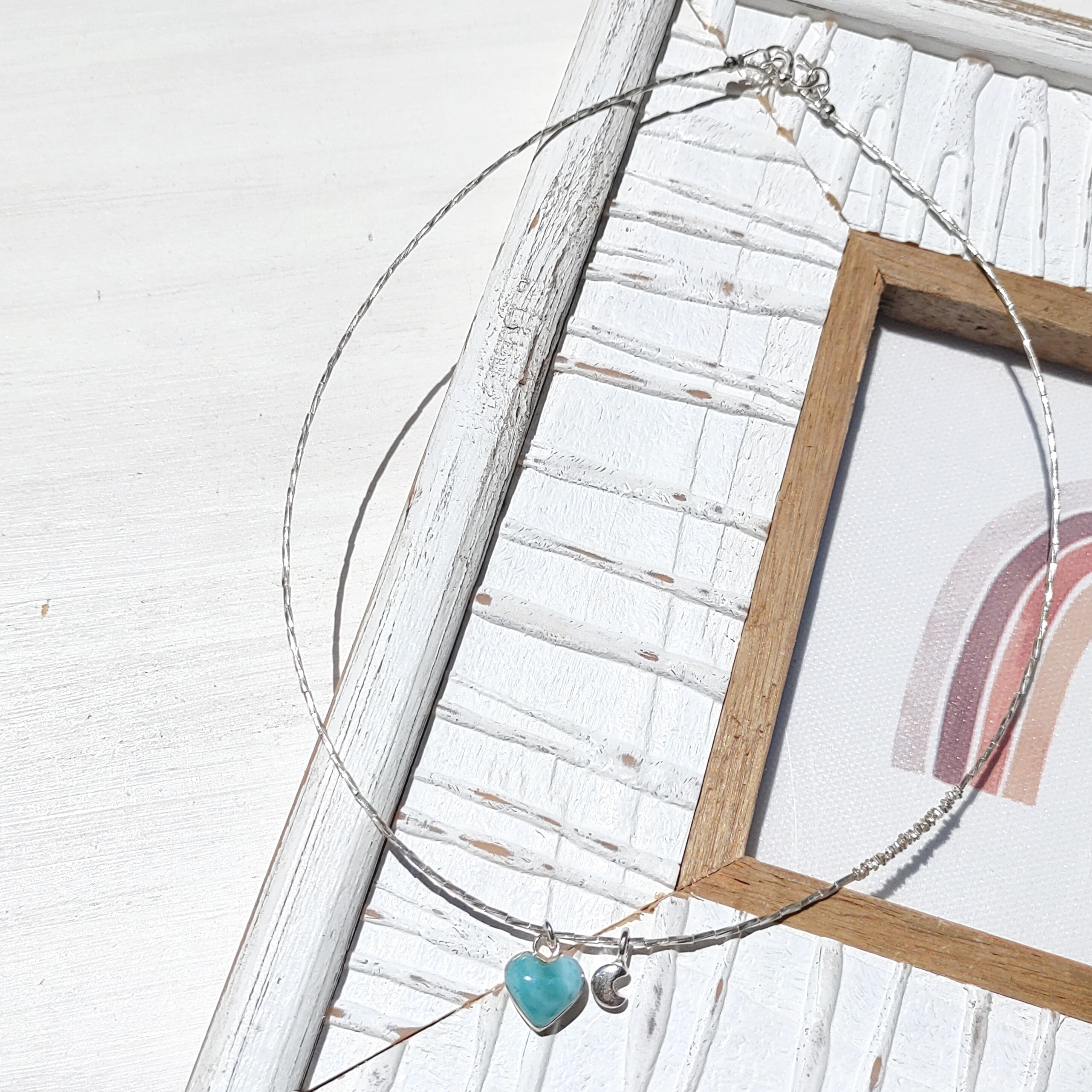 ドミニカ共和国直輸入の可愛いハートラリマー、寄り添うsilver925の可愛いお月様を合わせた