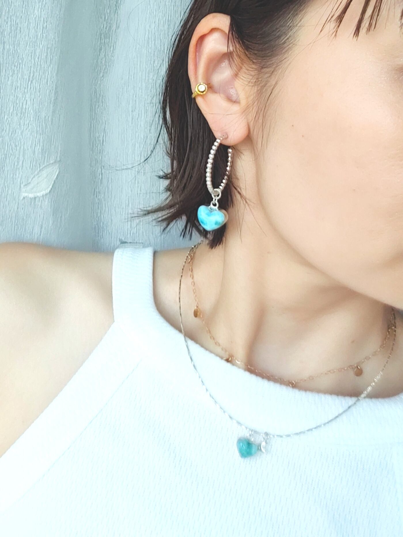 ラリマーブルーの可愛いハートラリマーが首元で映えて大人可愛い。