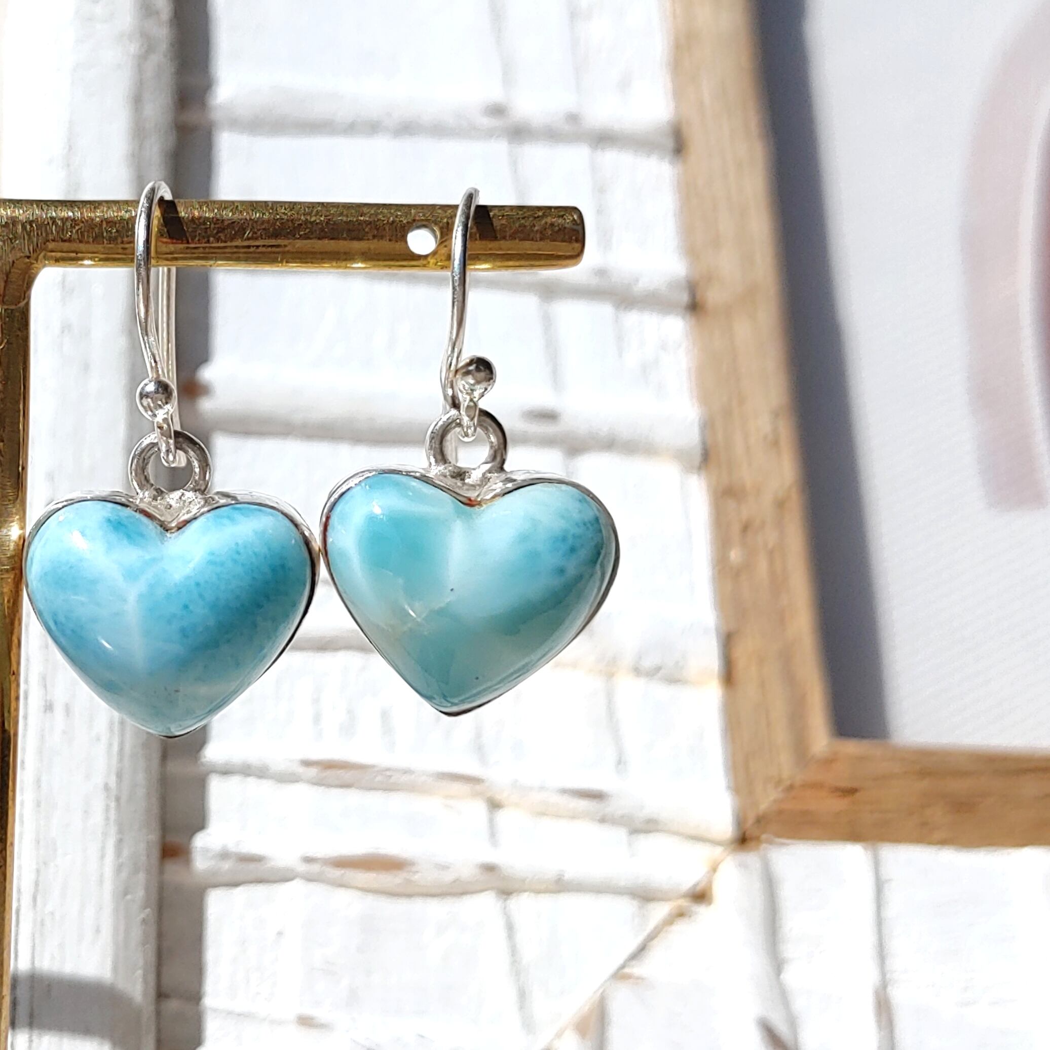 美しいハートのラリマーのピアスをお楽しみください♡