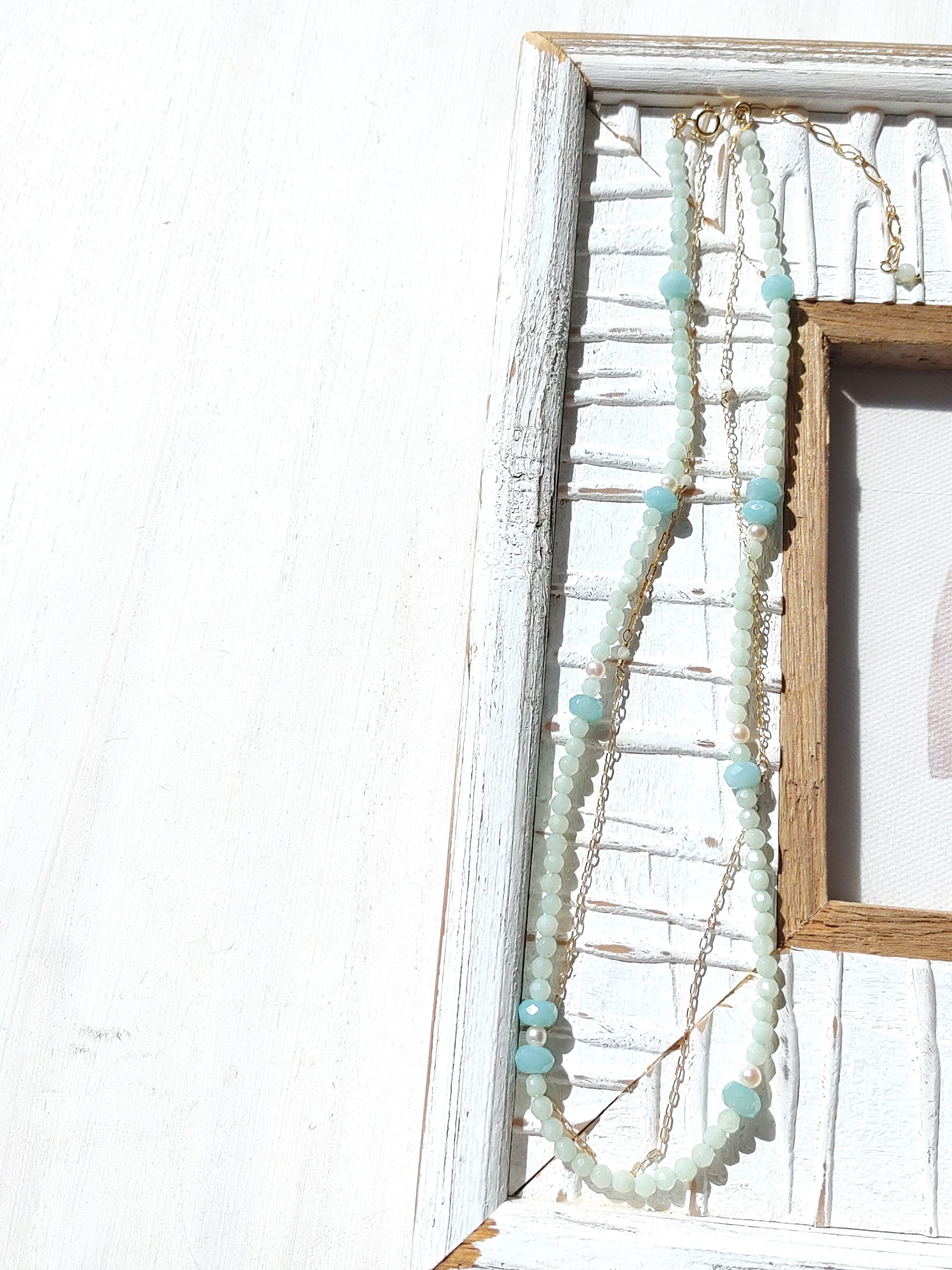 優しい爽やかな浅瀬の海のような2連ネックレスで夏のオシャレをアップさせてください。